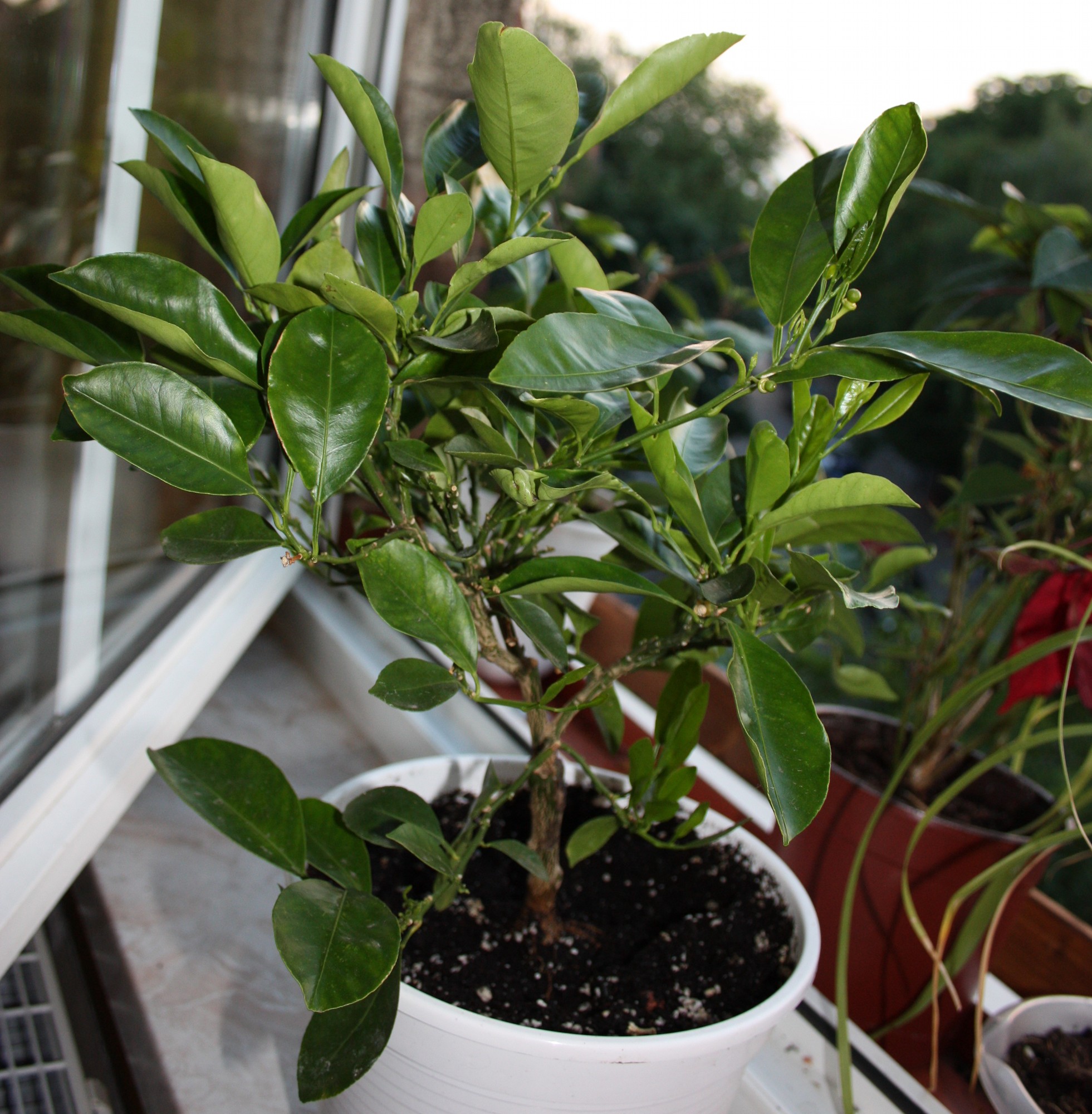 die Zitrone steht drinnen direkt am Fenster,sodass sie den ganzen Tag Sonne hat.