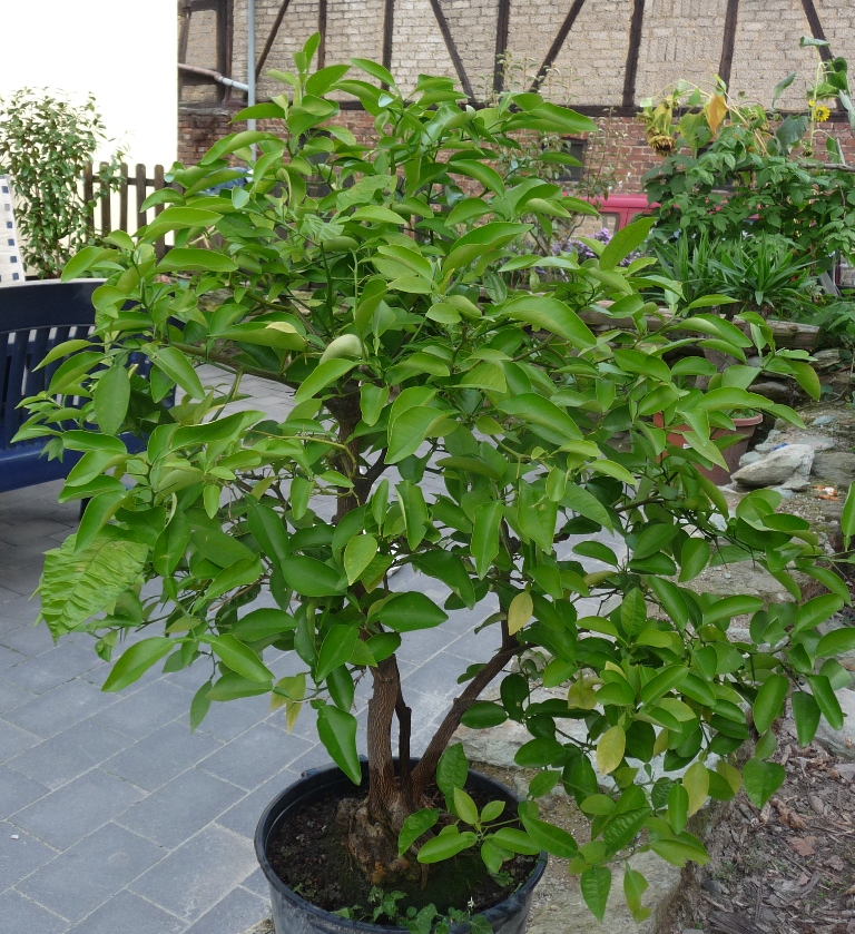 meine Orange habe ich nun schon 3 Jahre. Sie steht immer im Sommer draußen und ich überwintere kühl. Bis jetzt ist ihr das immer super bekommen. Dieses Jahr weiß ich nicht was die auf einmal hat. Die Blätter werden gelb und irgendwie rollen die sich ein. Sie bekommt immer dann Wasser wenn sie trocken ist, gedüngt wird immer so alle 3-4 Wochen, eigentlich eher sporadisch. Ich habe sogar schon 3x extra Eisendünger gegeben.Die Blätter sind trotzdem sehr fest und fallen nicht ab, Früchte trägt sie auch sehr viele. Leider habe ich nichts weiter gefunden in irgendeinem Thema.