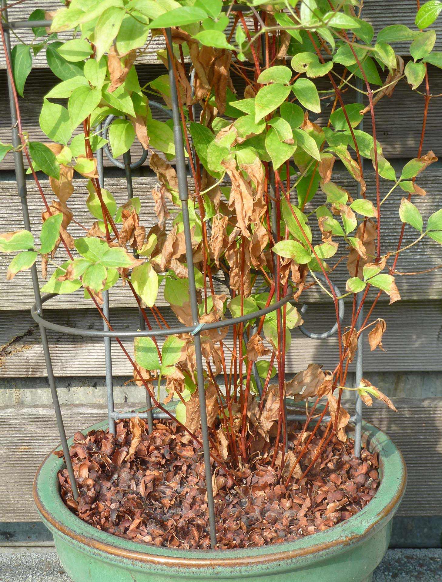 Meine inzwischen 3 Jahre alte Clematis-Pflanze macht mir aktuell Sorgen........nachdem ich im Frühjahr sämtliches altes Holz bis fast zur Erdoberfläche entfernt hatte ist die Pflanze wirklich sehr, sehr schön ausgetrieben und auch gewachsen.