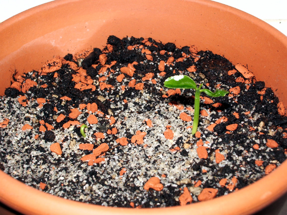 Hatte vor einiger Zeit (weiß schon gar nicht mehr wann, ca. November) Mandarinen-Kerne ausgesäht. Und zwar nach dem Tipp meiner Mutter: einfach in andere Blumentöpfe stecken und vergessen!