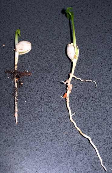 Aber was mache ich nun mit ihm? Ich hab ja einerseits Angst, dass ich ihn verletze oder ihm den Samen und damit auch die Nährstoffe klaue. Und andererseits hätte ich Angst, dass er sich mit seinen Wurzeln in den Wurzeln des Feuerradbaumes verheddert und ich ihn dann irgendwann nicht mehr heile da raus bekomme!