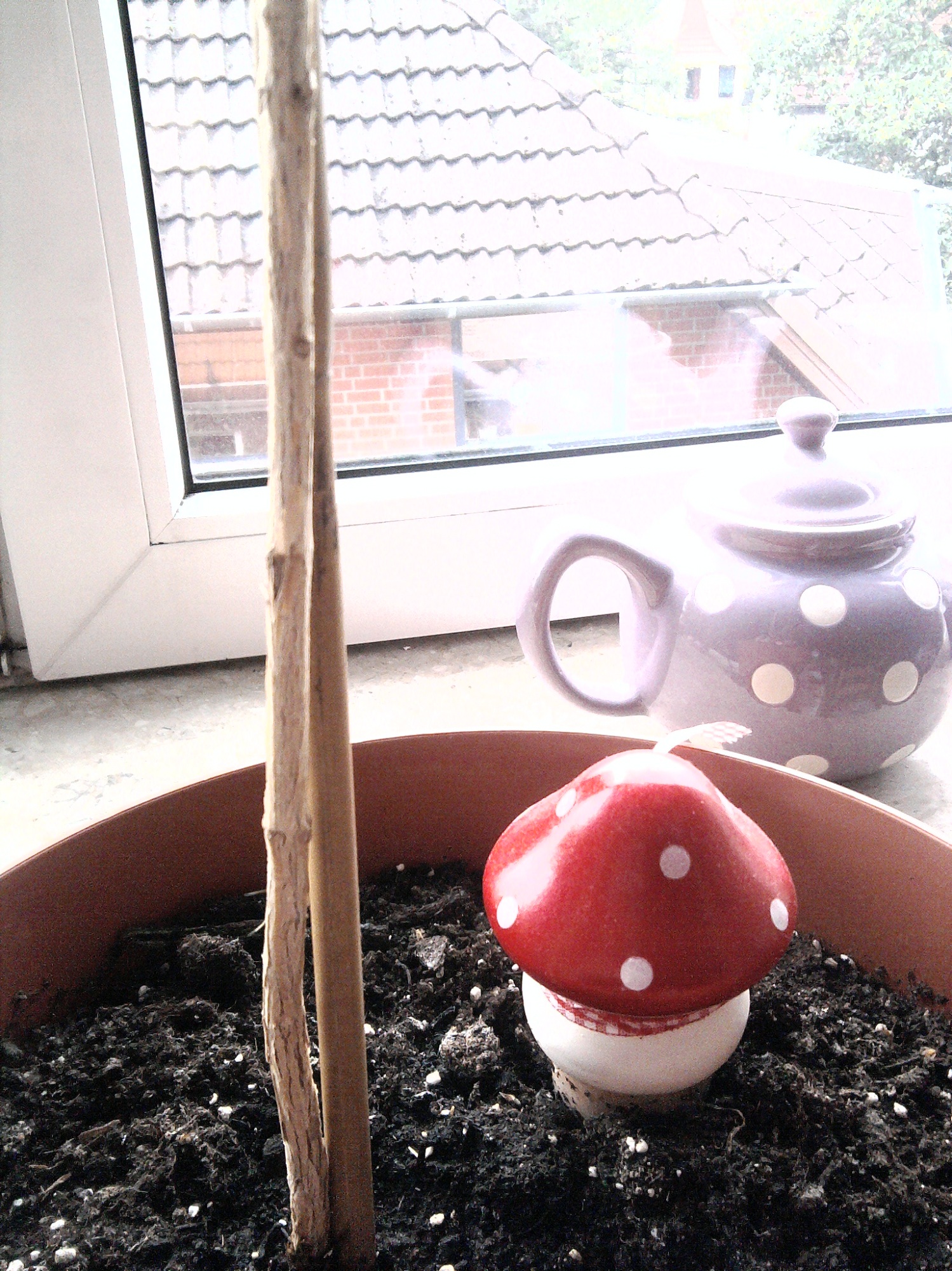 Warum stützt Du den Kaffeebaum eigentlich? Das muß er nicht haben. Wenn er nicht gerade Stürmen ausgesetzt ist, ist der Stamm sehr stabil.
