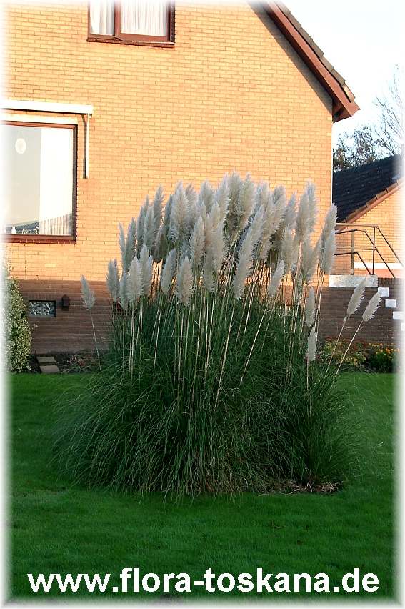 Umtopfen: Im März; wenn der Ballen stark durchwurzelt ist. Zeitgleich kann man die Horste teilen und damit verkleinern. Die jüngeren Teilstücke wachsen in eigenen Töpfen zu neuen Pflanzen heran. Pampasgräser brauchen allerdings 2 bis 3 Jahre, um einzuwachsen und zu voller Schönheit zu reifen.
