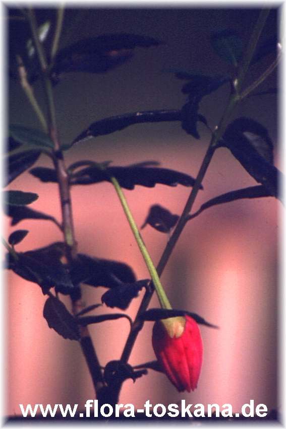 Info: rote Laternenblüten; langsamwüchsig; immergrün, bis 250 cm hohe Sträucher mit roten (C.- hookerianum) oder weißen Blüten (C. patagua), die an langen Stielen hängen. Blütezeit ist von Frühjahr bis Herbst.