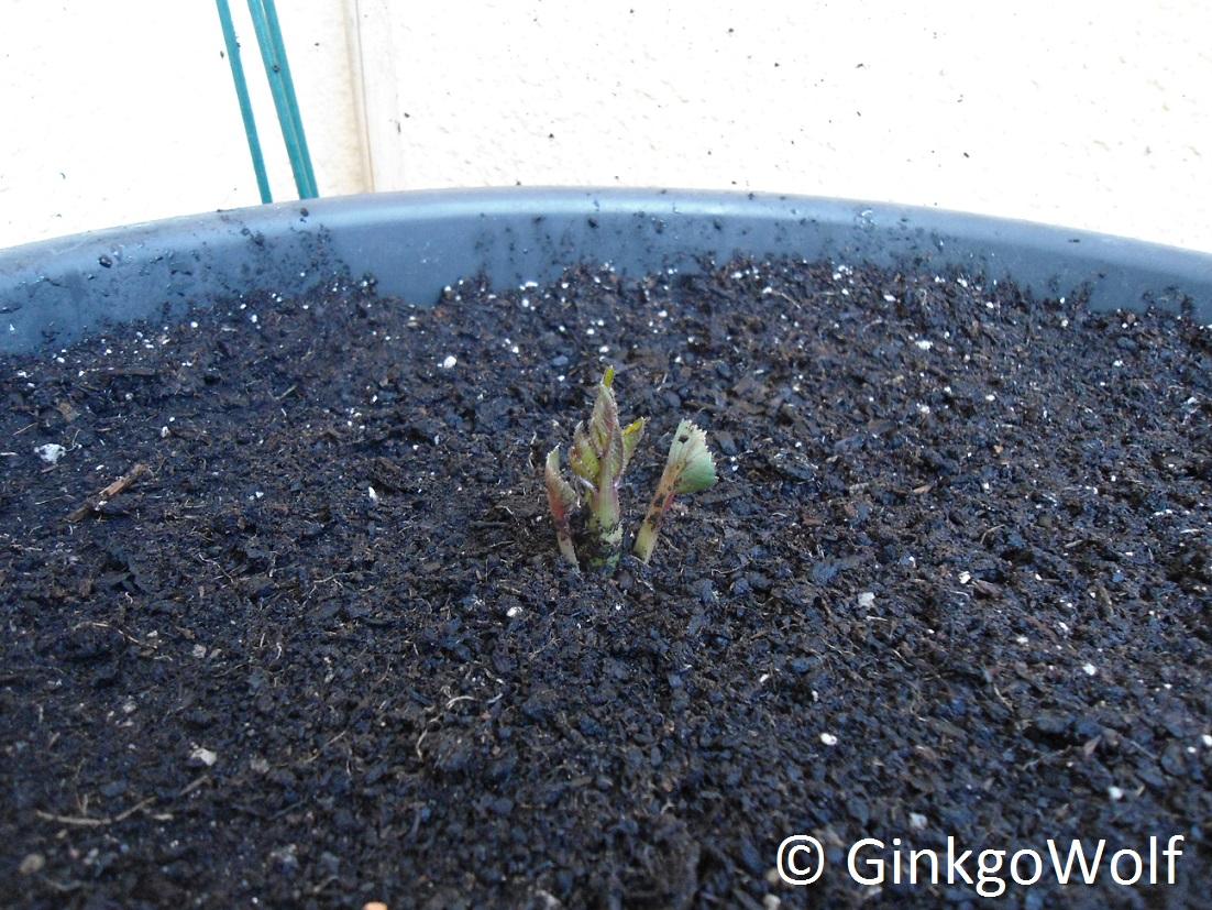 Nach den letzten sonnigen Tagen schaut sie nun schon aus der Erde, meine "Balkon-Queen" so heißt sie erstmal, danke dafür noch mal an Kaa - der Name passt vorerst auch perfekt