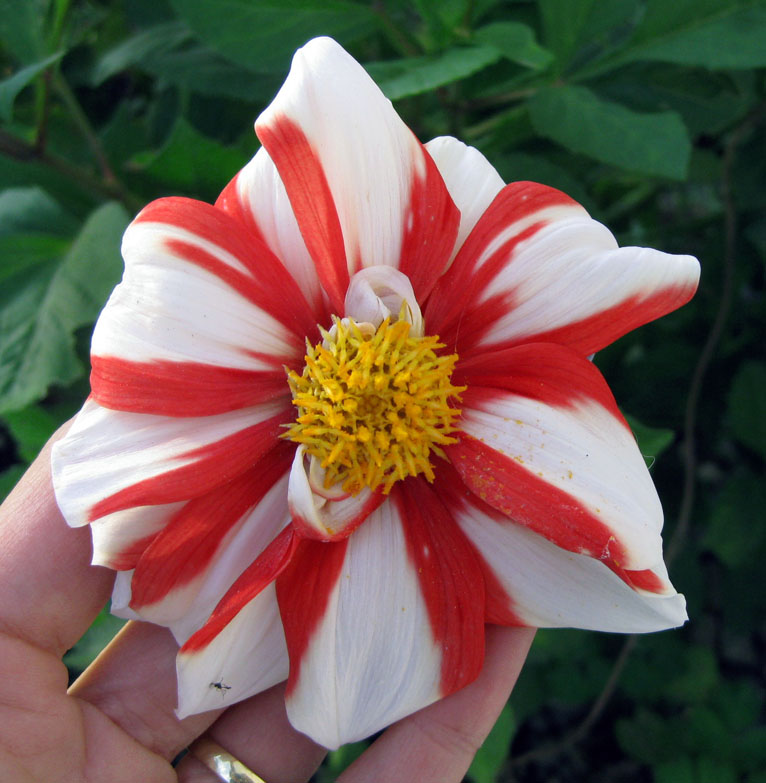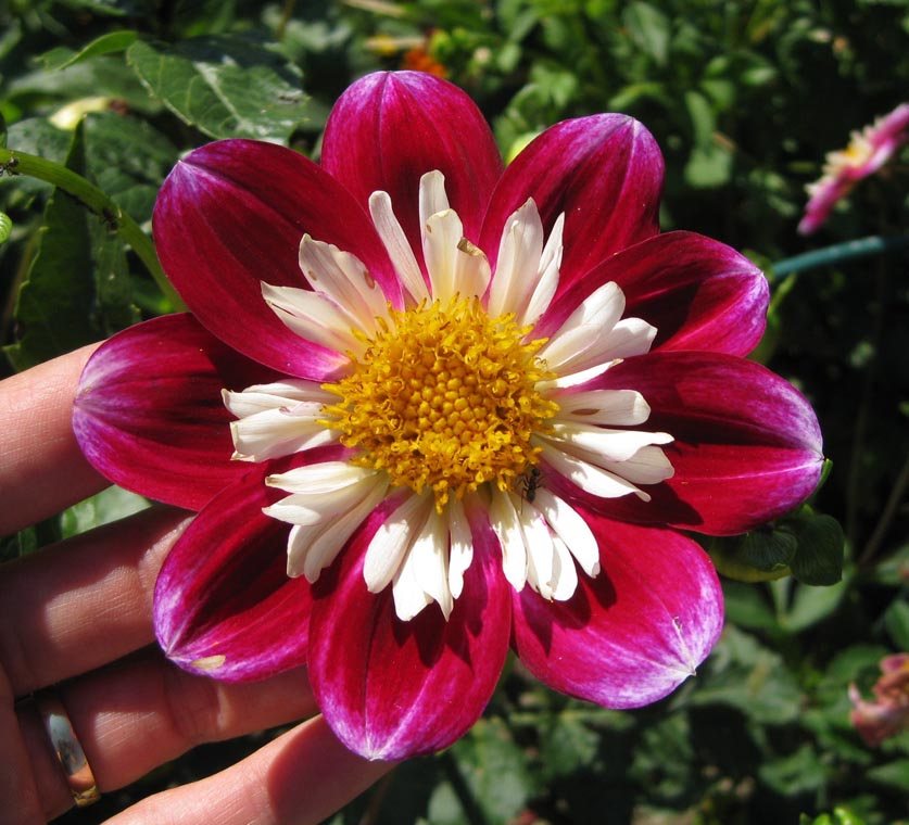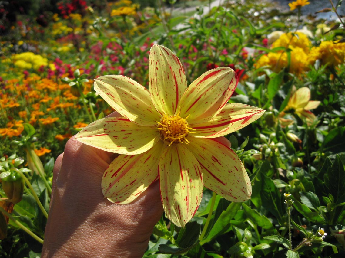 Man beachte die eine abartig große Blüte in rosa! Dagegen war meine Hand winzig! Ich möchte s eine allerdings nicht haben. Die knickt bestimmt leicht um! Ist mir zu bombastisch!