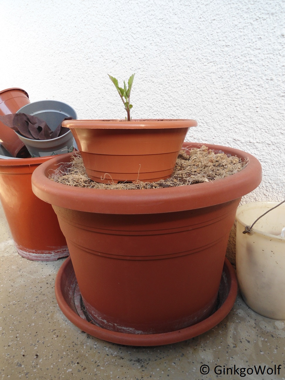 Eigentlich hatte ich an den runden Kübel gedacht, doch ich weiß nicht, ob der von der Größe her passend wäre. Also, ob die Dahlie auch genügend Platz drin hätte.
