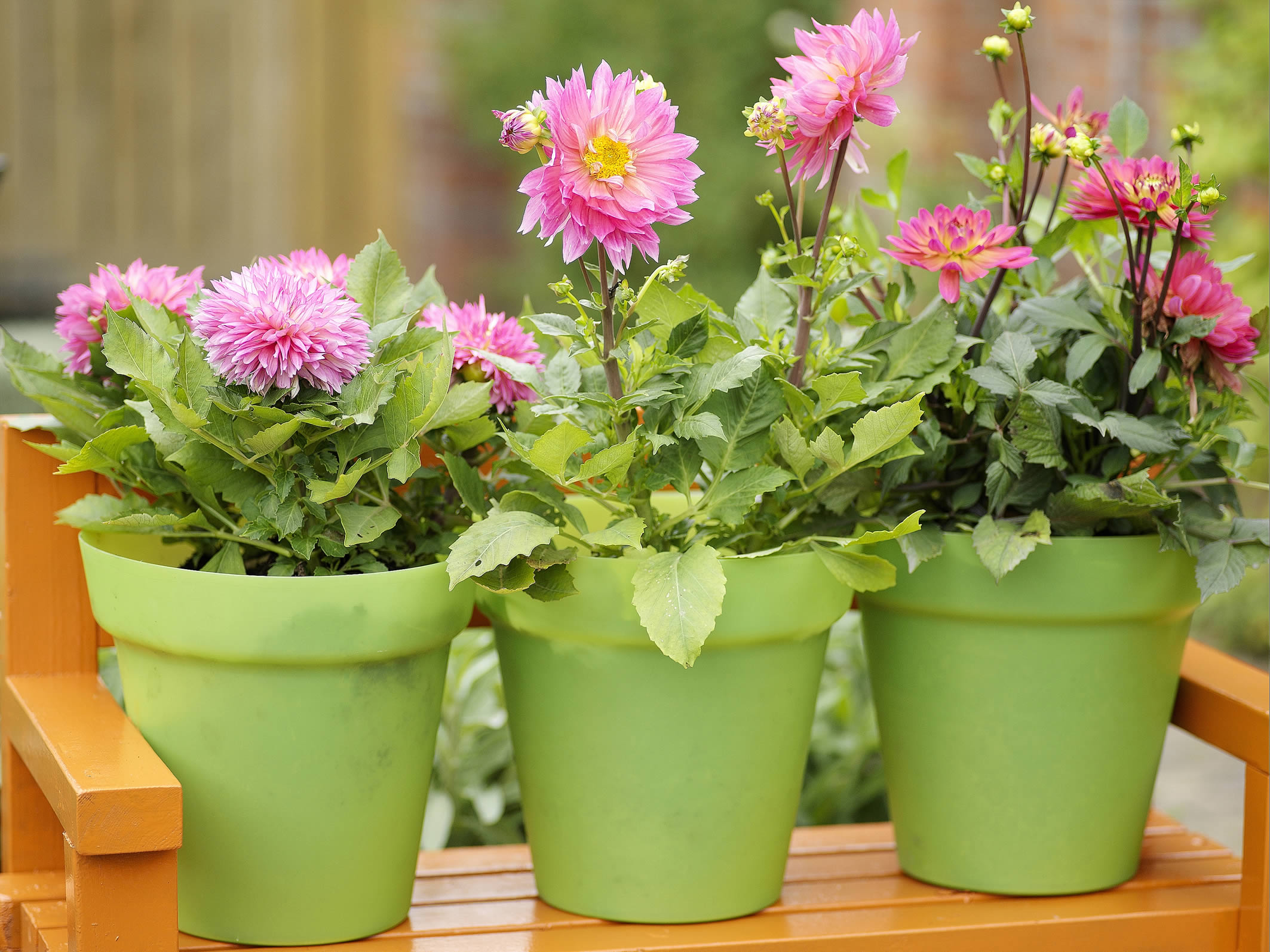 Die Dahlienknollen haben es in sich: Sie sind wahre Powerpakete, denn sie entwickeln sich schnell zu prachtvollen Blumen mit einer außergewöhnlich langen Blütezeit. Sie blühen von Juli bis zu den ersten Frösten im Herbst und machen so den Gartensommer richtig lang. Wohl kaum eine andere Pflanzengattung bietet eine derartige Farben- und Formenfülle wie die Dahlien. Sie gehören aber nicht nur zu den farbenfrohesten Sommerblühern für die Rabatte und den mobilen Garten, sondern sind auch wunderschöne Schnittblumen. Einige Sorten erreichen eine Höhe von über einem Meter. Die Großen unter ihnen kommen gut im hinteren Bereich von Staudenbeeten, entlang von Mauern oder ? wie früher in Bauerngärten üblich ? am Gartenzaun zur Geltung. Wachsen die Dahlien an einem schönen Zaun, entstehen nicht nur romantische Gartenbilder, die an längst vergangene Zeit erinnern, die hochwachsenden Pflanzen haben so auch einen zusätzlichen Halt, an den sie sich anlehnen können.