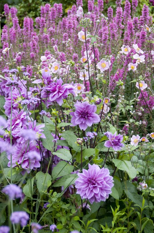 Zahlreiche neue Züchtungen, auch mit dunklen Blättern, haben in den vergangenen Jahren das Sortiment beträchtlich erweitert und Dahlien können so ihre ganze Vielseitigkeit ausspielen. Sie sind eindrucksvolle Gartenpflanzen, viele neu entstandene kompakte Sorten sind ideal für Töpfe und Kästen, und diese Sommerblüher sind auch wunderschöne Schnittblumen. Die dunkellaubigen Sorten können gut in außergewöhnlichen Pflanzenkombinationen verwendet werden. Dahlien finden sowohl im großzügigen Villengarten als auch im kleinen Stadtgarten und sogar auf dem Balkon einen Platz, denn ihre Wuchshöhe variiert beträchtlich: Einige Sorten erreichen eine Höhe von weit über einem Meter, andere werden nur 30 bis 40 Zentimeter hoch und eignen sich ausgezeichnet für Gefäße und für den vorderen Bereich von Beeten.