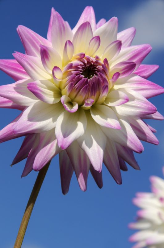 Die meisten Dahlien haben opulente Blüten und sind von jeglichem Understatement weit entfernt. Oft sind ihre Blüten mehrfarbig und weisen einzigartige Farbverläufe auf. Manche ihrer Blütenstände, die eine hellere Mitte haben, scheinen geradezu von innen heraus zu leuchten oder erinnern an feurige, vielstrahlige Sonnen. Zum großen Comeback der Dahlien trägt zusätzlich ihre Vielfalt bei. Wohl kaum eine andere Pflanzengattung bietet einen derartigen Farben- und Formenreichtum. Dahlien beeindrucken außerdem durch ihre außergewöhnlich lange Blütezeit, die vom Juli bis zum Frostbeginn im Herbst reicht.