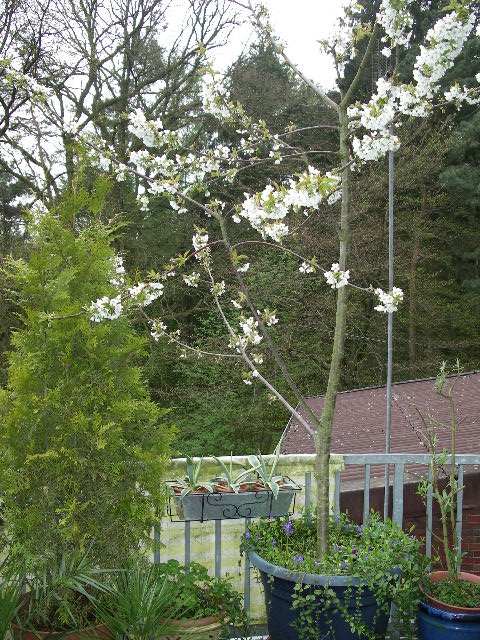 Die Heidelbeeren und der Kirschbaum fangen an zu blühen. Die Hostas treiben aus und die Maiglöckchen haben schon ganz viele Knospen.