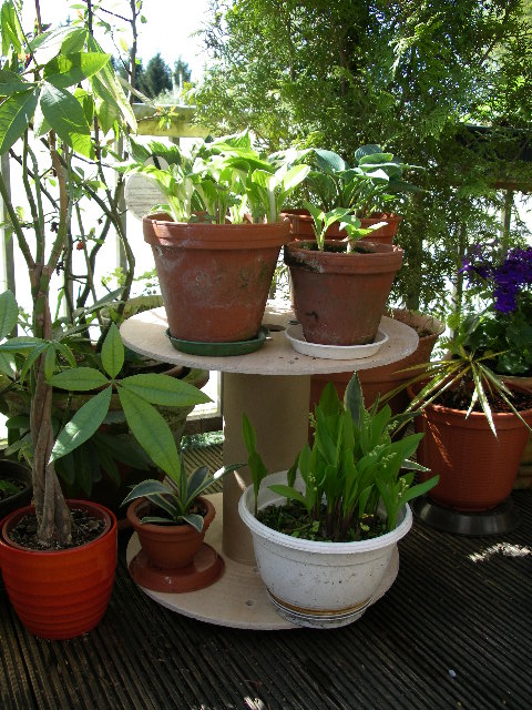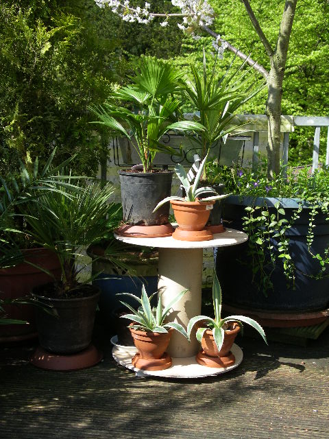 Habe gestern auf meine Frage 3 Kabeltrommeln von den Handwerkern in meiner Firma bekommen. Eine werde ich vermosaiken und die anderen beiden als Pflanzenständer nutzen. Sie müssen nur noch wetterfest gemacht werden. Aber ich habe schon mal getestet. Was meint ihr?