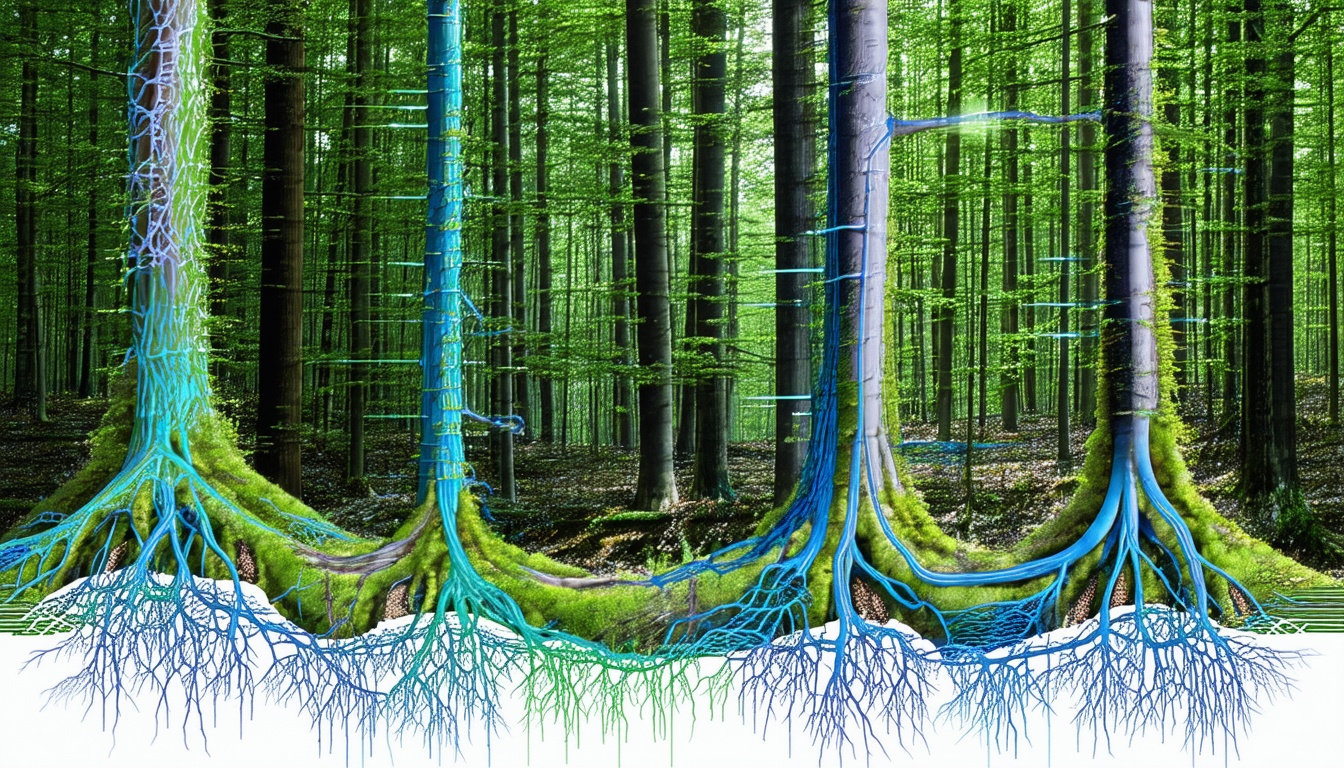 Die Kommunikation zwischen Bäumen über unterirdische Pilznetzwerke wird oft als das "Wood Wide Web" bezeichnet. Dieser Begriff beschreibt die symbiotische Beziehung, die Bäume und Mykorrhizapilze miteinander eingehen. Mykorrhizapilze sind Bodenpilze, die in enger Symbiose mit den Wurzeln von Pflanzen leben. Das Netzwerk, das sie bilden, ermöglicht eine effiziente Verteilung von Nährstoffen und Informationen zwischen verschiedenen Bäumen.