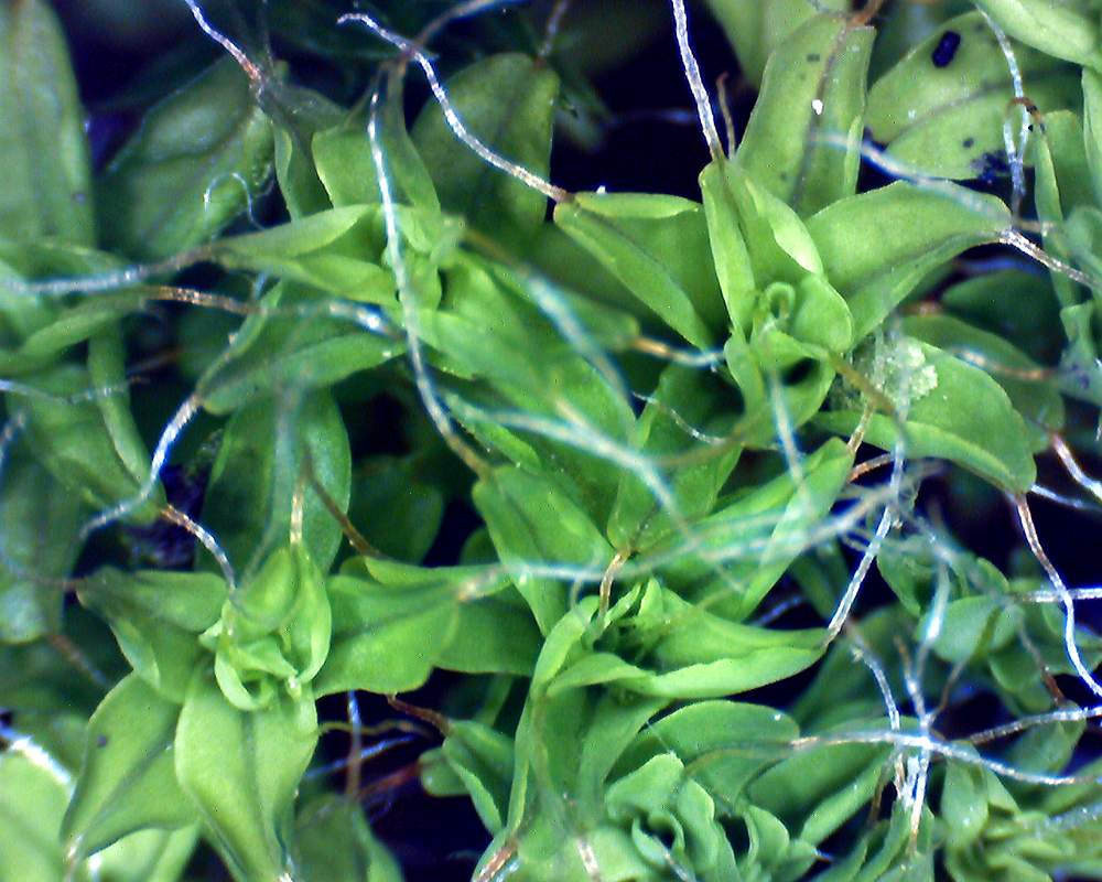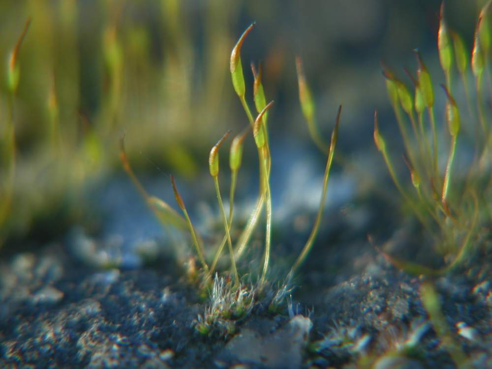 Dein Moos vom 19. 11. 2007 ist ein Drehzahn-Moos. Das bildet an jedem Blättchen aus der Mittelrippe heraus ein durchsichtiges "Glashaar". Das habe ich vor einer Weile mit dem USB-Micro aufgenommen.