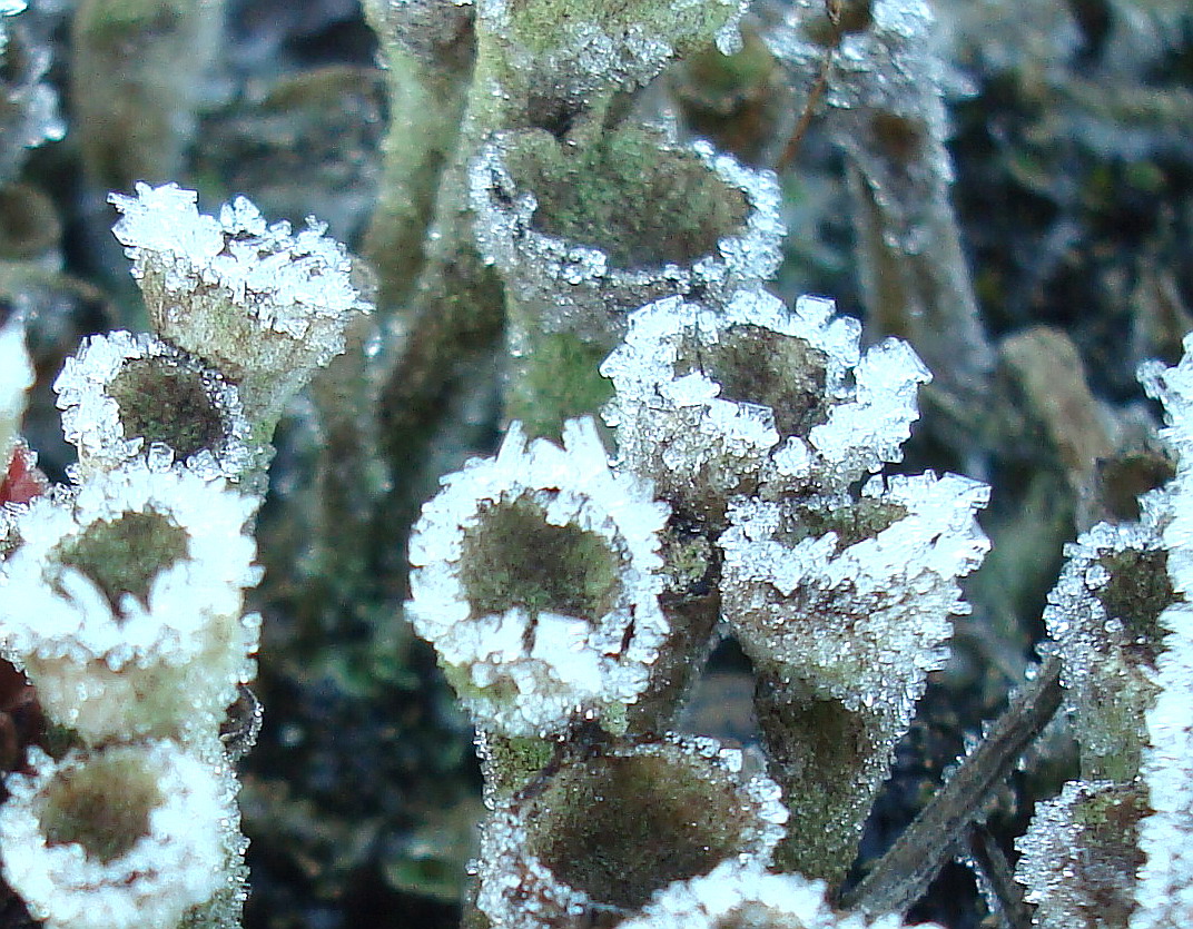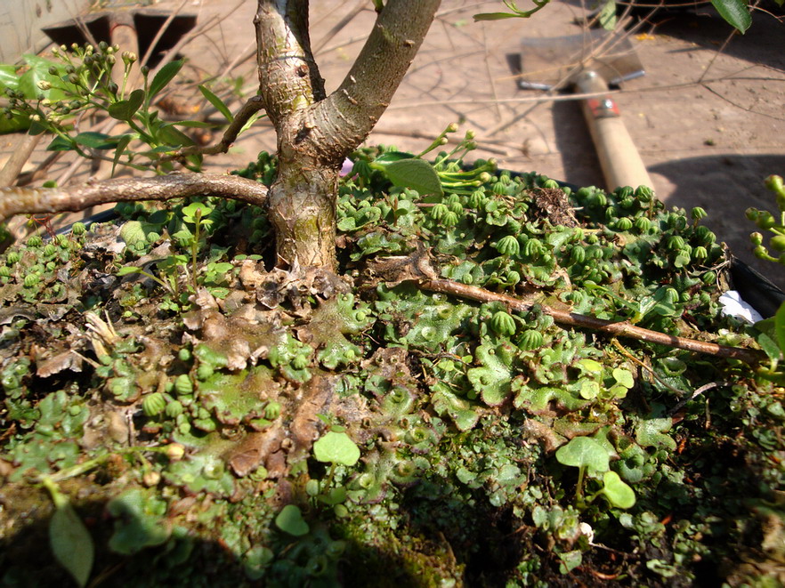 Die "Bäumchen" (Sporophyten) darauf sind durch Befruchtung entstanden. Sie sind diploid. Sie bilden die Sporen. Die "Becherchen" auf deinem Foto vom Dez 08 sind die Archegonien (ich glaube die größeren) und Antheridien, aus denen nach der Befruchtung diese "Bäumchen" wachsen. Die Becherchen sind auch auf dem Foto Rose.