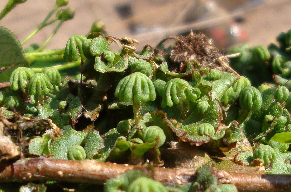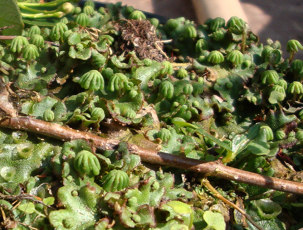 Die niederliegenden "Blättchen" (Thalli) sind haploid (besitzen nur einen einfachen Chromosomensatz).