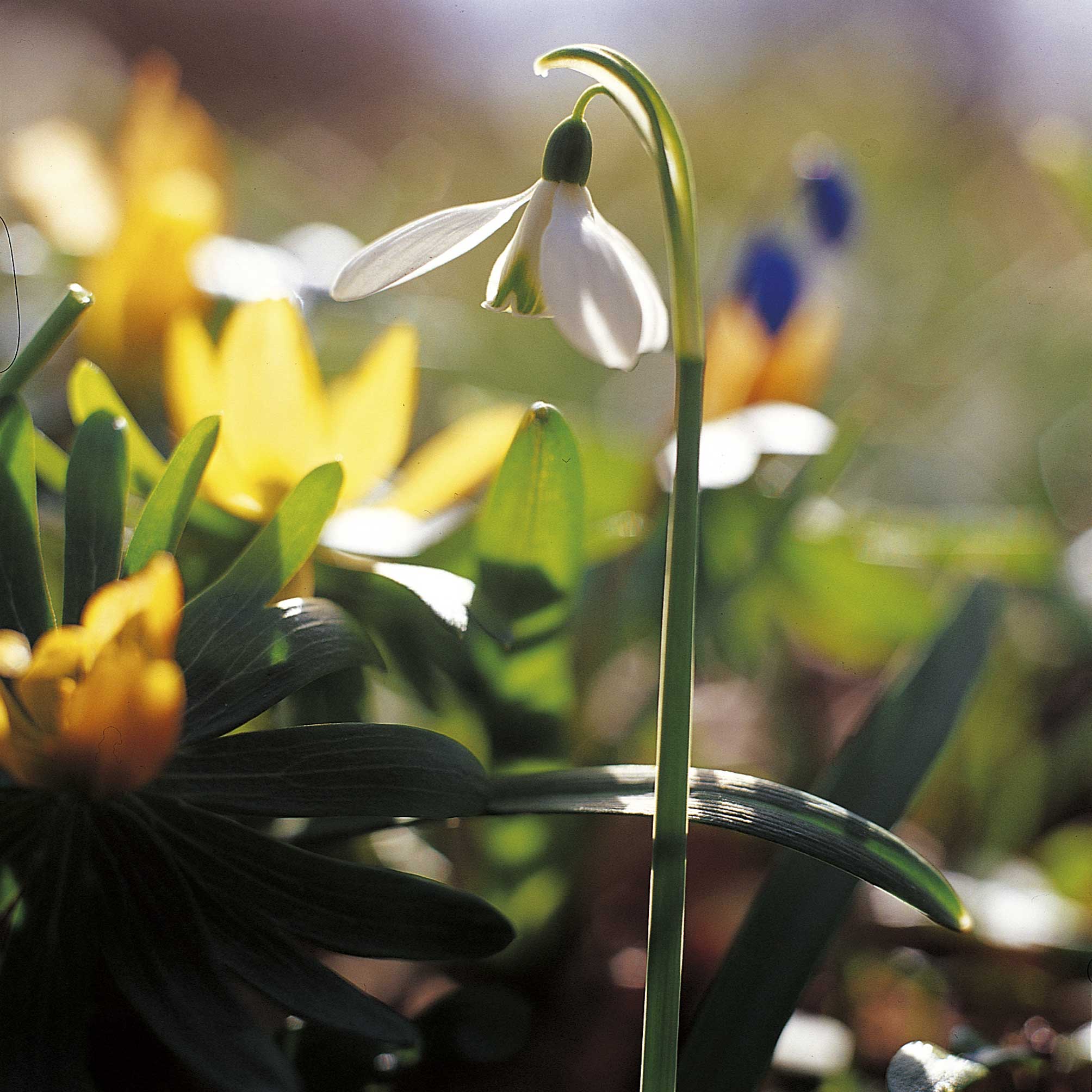 Spätere Untersuchungen zeigten, dass Galanthamin auch in anderen Pflanzen wie Narzissen und Sommerknotenblume (Leucojum aestivum) sowie im Europäischen Schneeglöckchen (Galanthus nivalis) vorkommt. Diese Zwiebelblumen gehören alle zur Familie der Amaryllisgewächse. Der Wirkstoff wurde lange Zeit in Osteuropa, besonders in Bulgarien, bei Patienten mit Lähmungserscheinungen verwendet. In den 80er Jahren wurde Galanthamin im Hinblick auf die Wirkung bei Alzheimer in Westeuropa getestet. Als sich hier Erfolge zeigten, begann man, die Substanz synthetisch herzustellen, um den großen Bedarf an diesem Rohstoff stillen zu können. So hat ein kleiner Frühlingsbote einen Anstoß für eine wichtige medizinische Entwicklung gegeben und zeigt, welche wertvollen Ressourcen in Wildblumen schlummern können. Auch die Schneeglöckchen im Garten sind besondere Schätze. Sie sind Symbole der Hoffnung und blühen trotz widriger Umstände unerschütterlich. So bringen sie Anmut und Schönheit in den Garten, wenn man es am wenigsten erwartet.