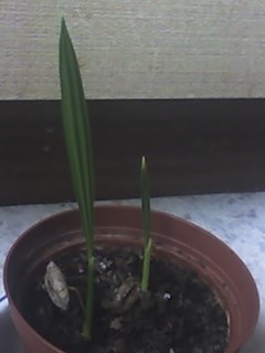 das ist meine Dattelpalme, die ich im November 2006 gesät habe, nachdem ich die Dattelkerne fast 10 Jahre vorher aus Saudi-Arabien mitgebracht hatte und in meinem alten Koffer vergessen hatte.