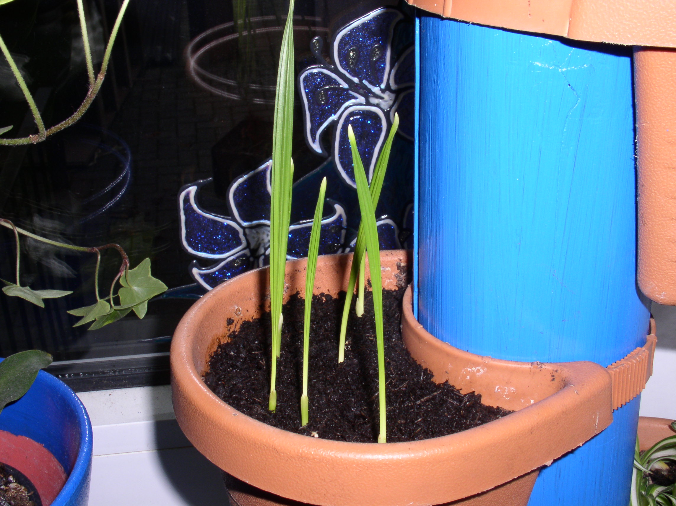 Hier ein Bildchen von meinem am 05.11.08 unter die Erde gebrachten Dattelkern
