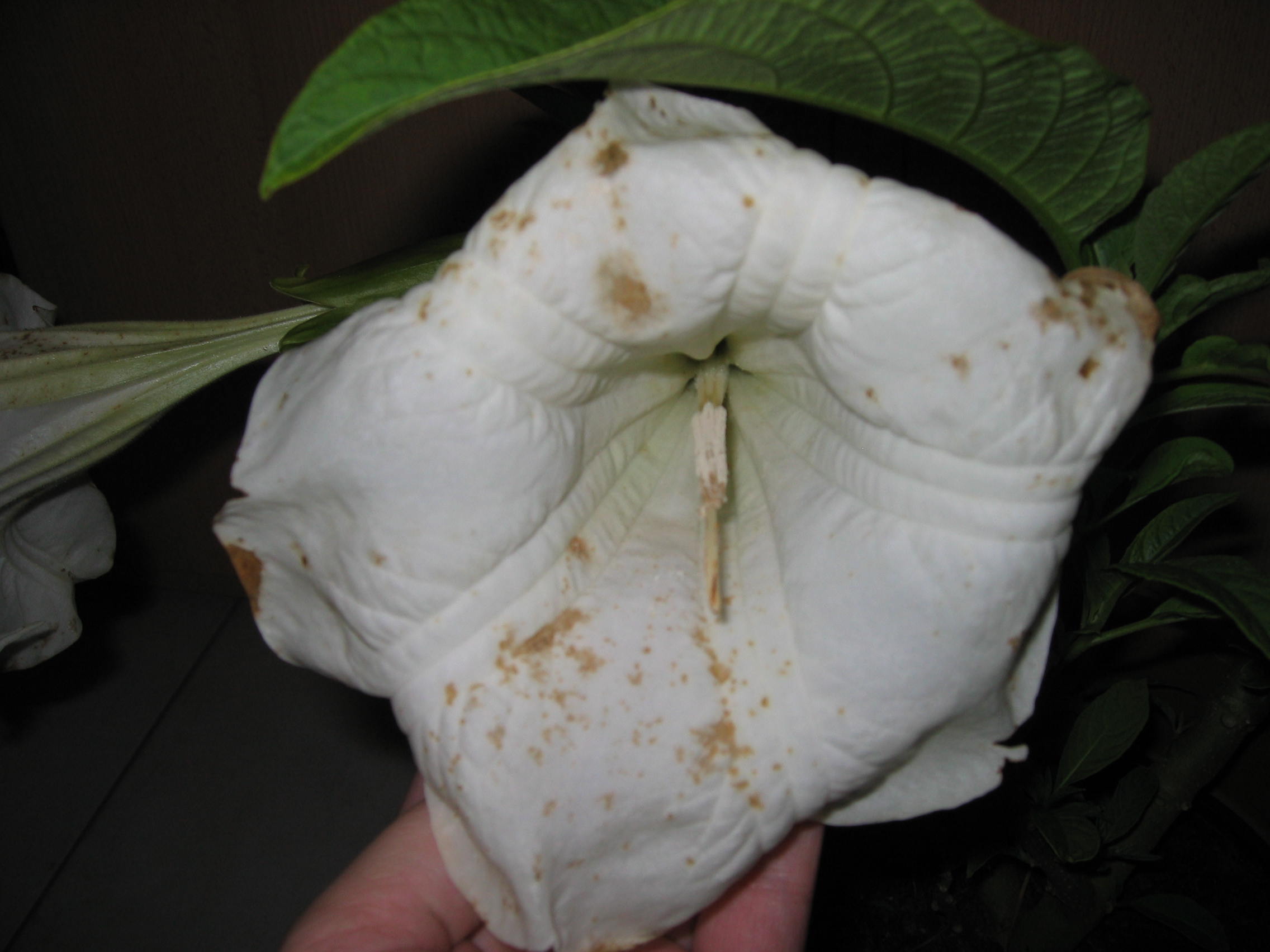 Da ich nun endlich an eine Digicam gekommen bin, möchte ich nun auch wissen, ob dies nun eine Datura oder eine Brugmansia ist.