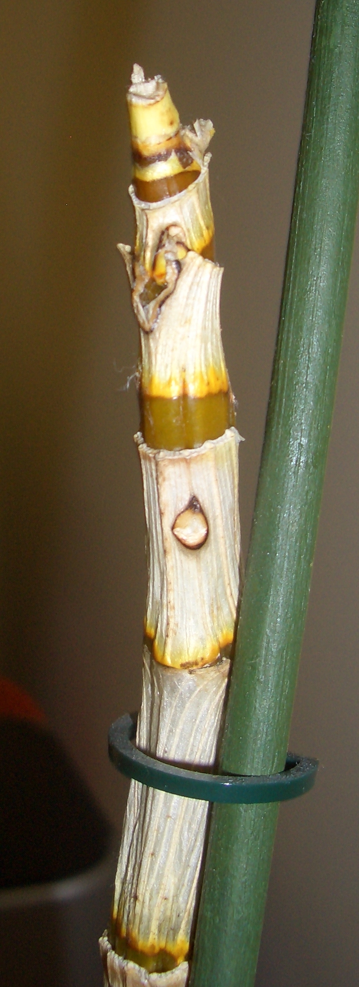 Nur an einer Stelle ist ein neuer Stängel vom "Hauptstängel" herausgewachsen, und ich weiß nicht ob ich ihn einpflanzen soll oder ob er da bleiben soll.