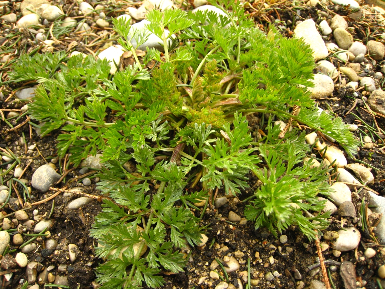 Die Blätter riechen nach Gelbe Rüben, die Wurzel ist kräftig, verzweigt und weiß.