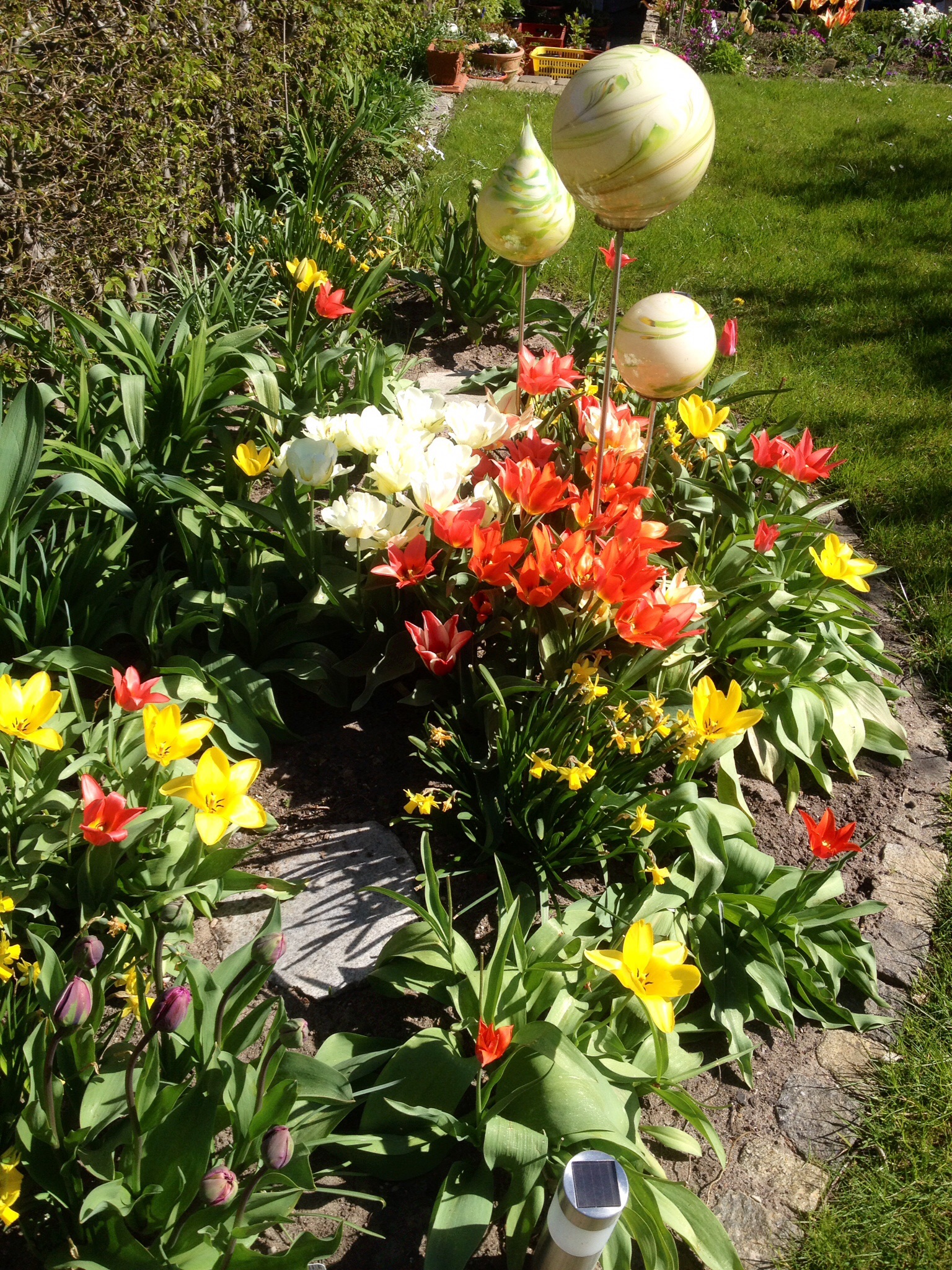 Heut entdecke ich doch in meinem Beet mehrere kleine Schachbrettblumen. Eine hatte ich mir ja vor ein paar Wochen gekauft,weil ich dachte,ich hab meine alte beim Teilen gehimmelt. Das die sich SO aussäen hab ich nicht gewusst. Und was das tollste an der Sache ist,ich hab jetzt eine weiße,juchu !! Und die hab ich noch nie gehabt !!! Ehrlich !!