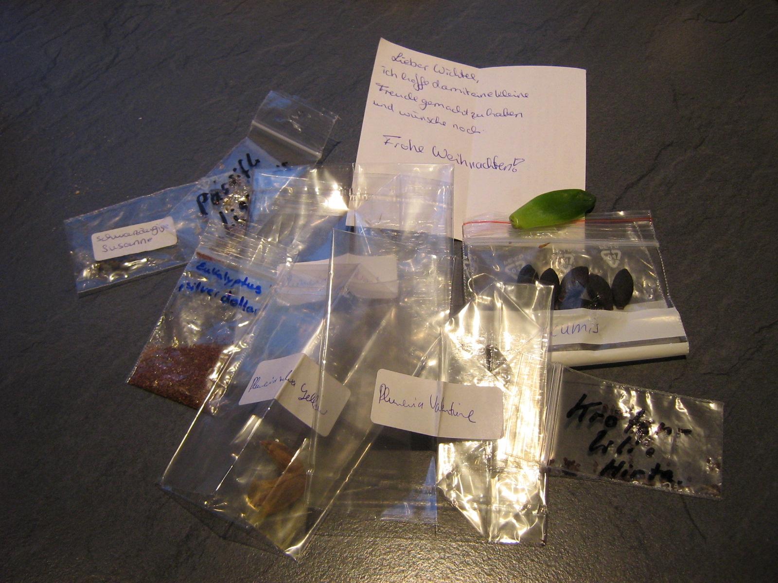 In meinen Päckchen waren Samen von Grenadilla, Mimosa Pudila, BergPapaya und Bowiea volubilis.