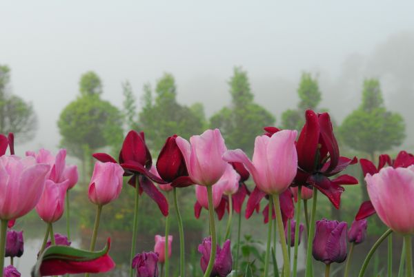 Seit dreißig Jahren experimentiert sie im eigenen Teegarten im niederländischen Weesp südlich von Amsterdam. Ihre Gärten sehen aus wie von Impressionisten gemalt. Sie spielt mit der Veränderung und mag es, wenn sich ein und derselbe Garten im Laufe des Jahres farblich entwickelt, je nachdem, ob gerade die Frühlingszwiebelblumen, die Gehölze oder die Stauden die Oberhand gewinnen. Van der Kloet hat den Garten als Ganzes im Blick, seine Strukturen, die sich aus Wegen, Bäumen und Mauern ergeben, die Farben von Blüten und Blättern, bis ins kleinste Detail der Texturen von Blättern oder Baumrinden. In ihren Gärten sieht man vom frühen Frühjahr bis in den späten Herbst keine nackte Erde. Die Blumenzwiebeln entwickeln sich zwischen den Stauden, stehen prächtig auf einer Bodendecke aus Alchemilla mollis, frisch austreibenden Pfingstrosen oder zweijährigen Vergissmeinnicht, und wenn die Stauden mächtig werden, geben sie den Zwiebelblumen alle Zeit, in Ruhe zu verwelken und einzuziehen. Es scheint ein Geben und Nehmen, ein Kommen und Gehen, das die Veränderung und den Zauber ihrer Gärten ausmacht. So früh und so lange wie möglich, sollen Gartenbesitzer ihren Garten genießen und immer wieder staunen.