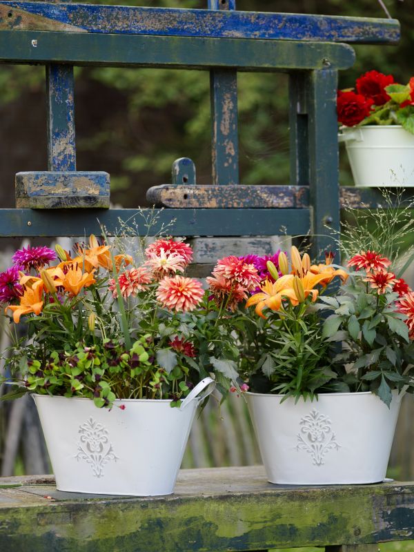 Weil die im Sommer blühenden Zwiebelblumen meistens in braunen oder schwarzen Plastiktöpfen angeboten werden, ist ein Übertopf nötig. Man kann auch mehrere Sommerblüher in eine Schale oder einen Kasten zu einem kleinen Miniaturgarten zusammenpflanzen. Wie auch immer man sich entscheidet - die Wirkung der Pflanzen wird durch die Farbe und das Material der Gefäße mitbestimmt. Ein schöner Weidenkorb, der vor dem Bepflanzen mit wasserundurchlässiger Folie ausgelegt wurde, wirkt ländlich-rustikal, während ein Designgefäß aus Metall mit klaren Linien modern aussieht. Dazwischen gibt es eine ganze Bandbreite an Möglichkeiten - Terrakotta-Gefäße, glasierte Keramiktöpfe, fröhlich-bunte Kunststoffgefäße, nach eigenem Geschmack gestaltete oder lackierte Töpfe, elegante Gefäße aus Edelstahl und dazu noch Blumenkästen, Hängeampeln oder schlanke, hohe Pflanzsäulen. So vorbereitet, können die Gäste kommen. Übrigens: Im Korb sind Zwiebelblumen auch ein schönes Geschenk.