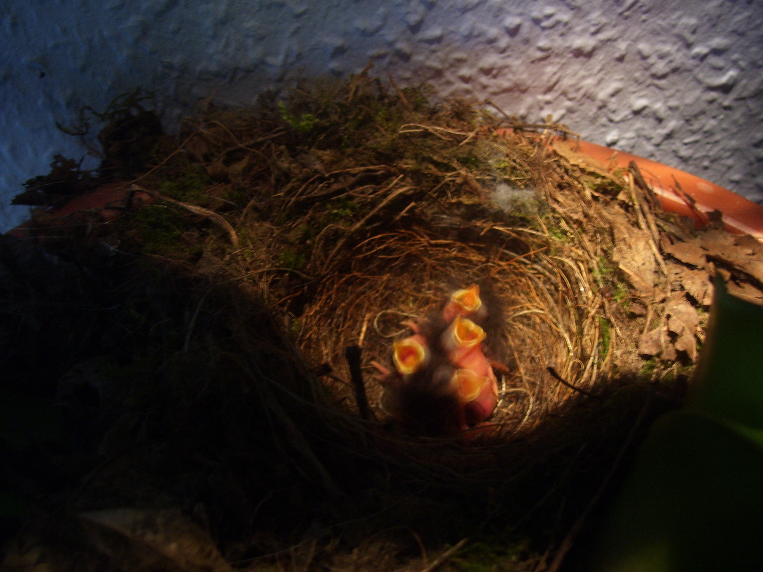 Was eine Aufregung! Zwischen 15 und 16 Uhr sind die Rotkelchen-Babys in meinem Schlafzimmer geschlüpft!!!!! Ich bin soooo aufgeregt...