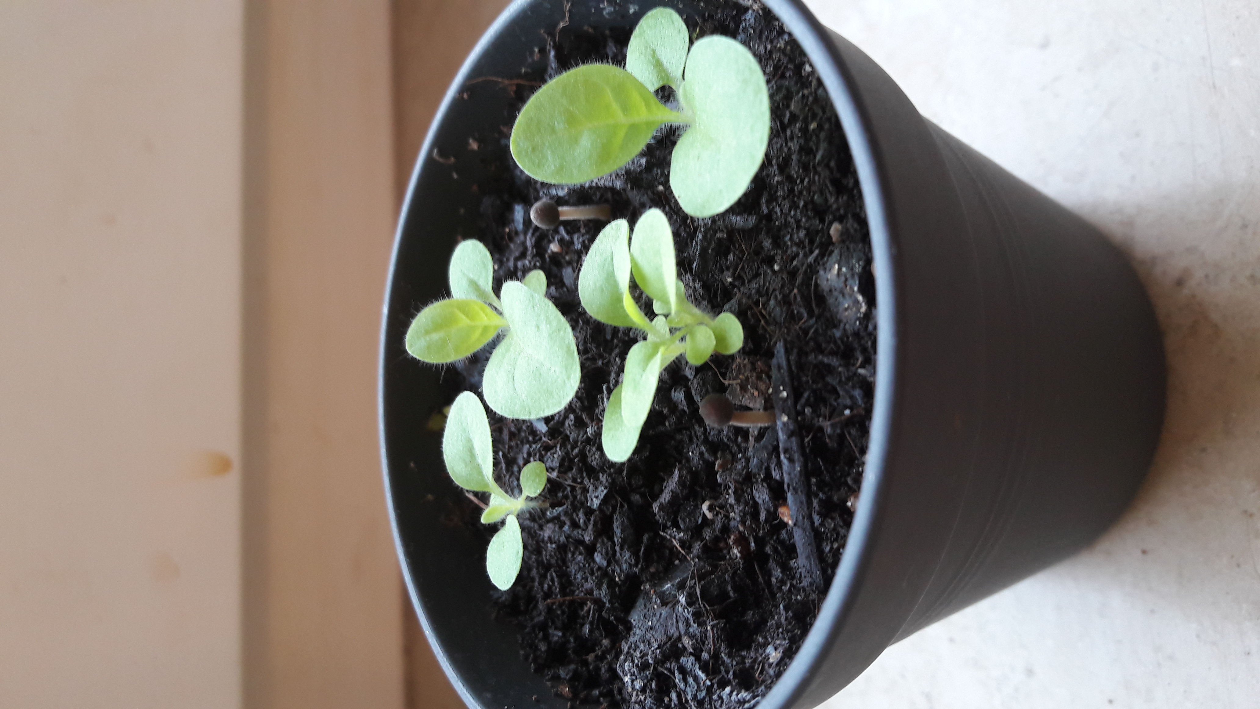 Ich dachte heute nach dem Aufstehen, meine entzündeten Augen sehen hier nicht recht. Zwischen meinen Baby-Tabakpflänzchen entdeckte ich Gesellschaft. Ich gehe schwer davon aus, das es sich hier nicht um die neueste Sorte Tabak handelt, sondern um Pilze. Ich muss gestehen ich erfreue mich jetzt fast mehr am Pilz als am Tabak:)