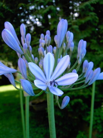 Die auffallenden, zumeist blau gefärbten Blüten der Schmucklilie erscheinen ab Juli. Das Farbspektrum umfasst die unterschiedlichsten Blaunuancen von zartem Hellblau bis hin zu kräftigem Dunkelblau. Einige Sorten haben auch weiße Blüten. Damit sich die Pflanzen zu ihrer vollen Schönheit entwickeln können, sollte man ihnen einen sonnigen Standort bieten.