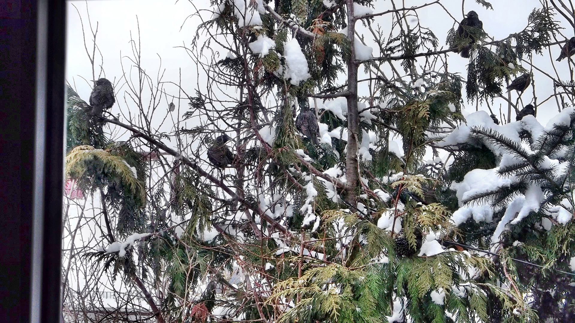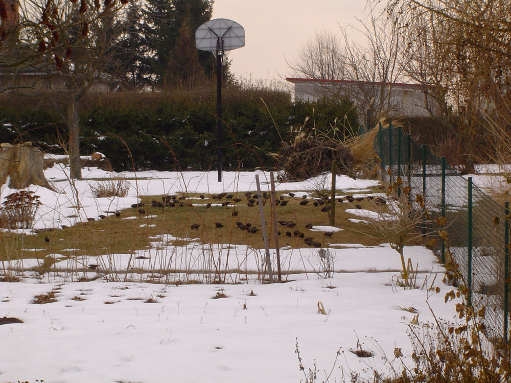 Hier treiben die Stare sich den ganzen Winter herum. Ich mag sie unheimlich gerne.