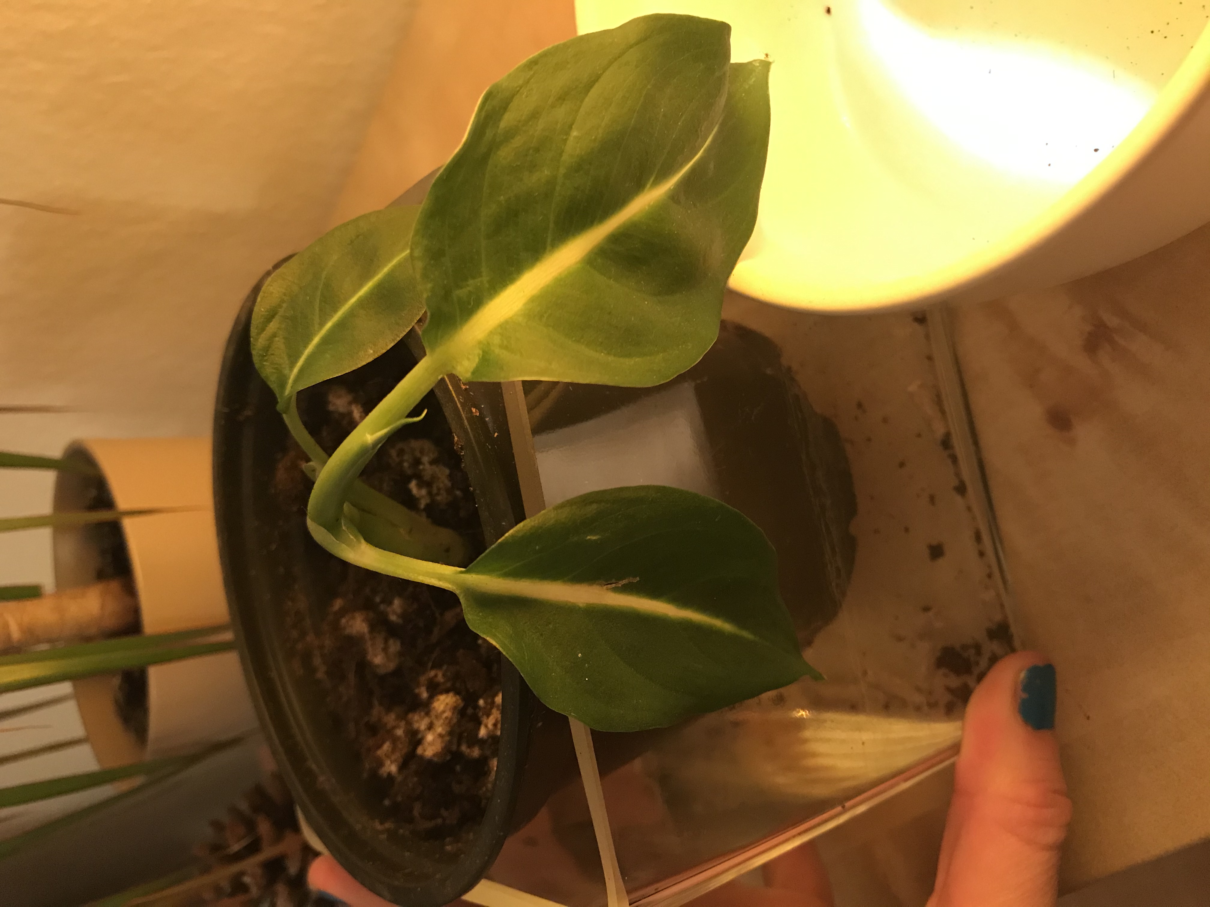 ich habe seit zwei Wochen eine kleine Dieffenbachia bei mir. Zuerst schien es ihr sehr gut zu gehen, ich habe sie mäßig gegossen, dass sie nicht austrocknet, und sie an einem halb hellen/halb schattigen Ort stehen gehabt, ohne direktes Sonnenlicht. Vor einer Woche ist sie dann auf die Fensterbank umgezogen. Zunächst schien es ihr nichts auszumachen, doch dann war ich zwei Tage nicht da, komme wieder und sie lässt ganz schlaff ihre Blätter hängen. Habe sie aus dem Substrat geholt und gesehen, dass es ganz nass und matschig war, scheinbar habe ich ihr vor meinem Miniurlaub zu viel Wasser gegeben. Habe sie nun in neues Substrat umgetopft und so präpariert, dass überflüssiges Wasser ablaufen kann.