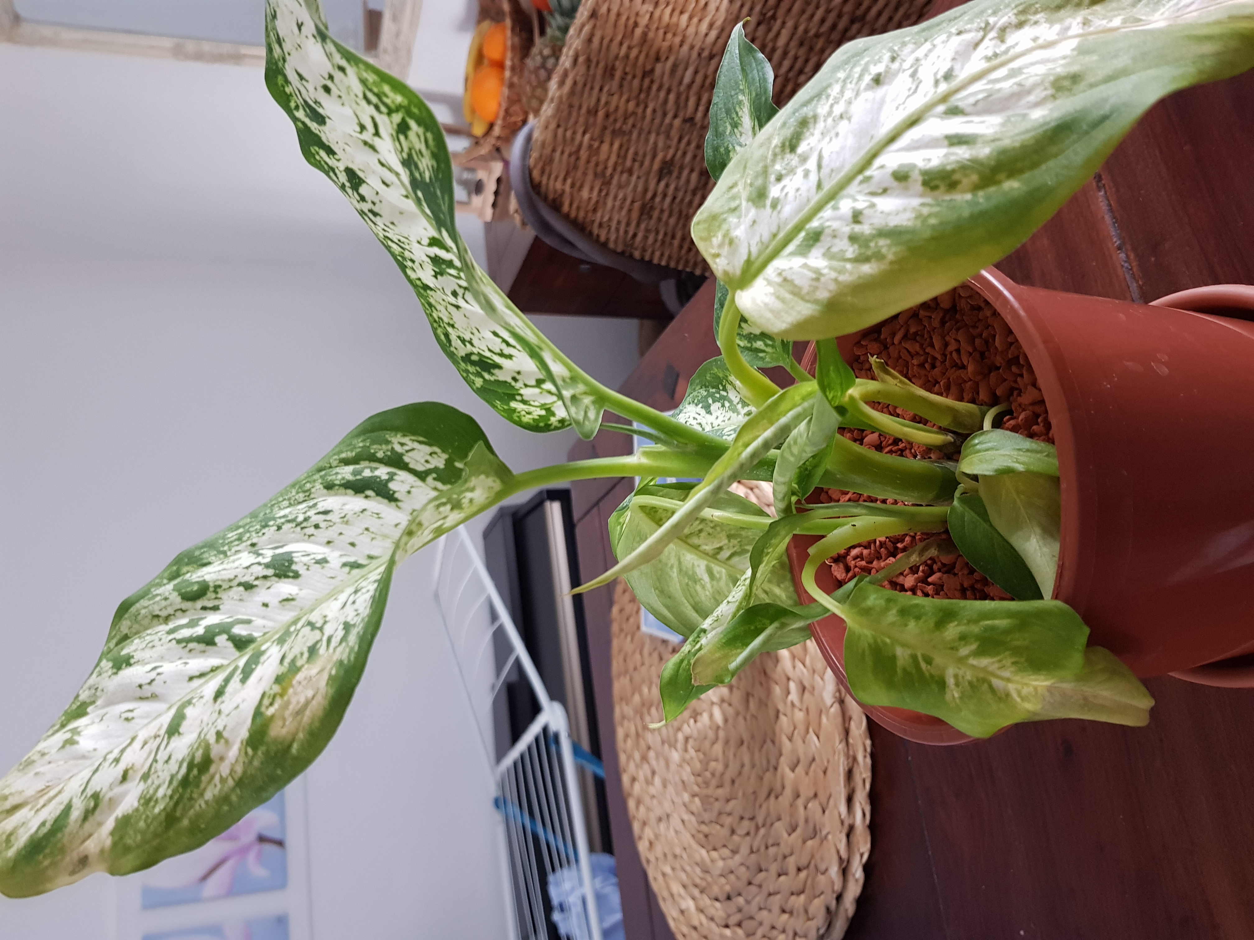 wir haben vor etwa 3 Wochen eine Dieffenbachie gekauft, sie ist aber seitdem kontinuierlich eingegangen. Gelbe Blätter, die dauerhaft recht schlapp sind, mittlerweile ist die komplette Pflanze wegen der vielen sterbenden Blätter auch sehr ausgedünnt (siehe Foto). Irgendwelche Tipps? Welche Krankheiten könnte sie denn haben? Ich vermute, es könnte ein Problem mit den Wurzeln sein...