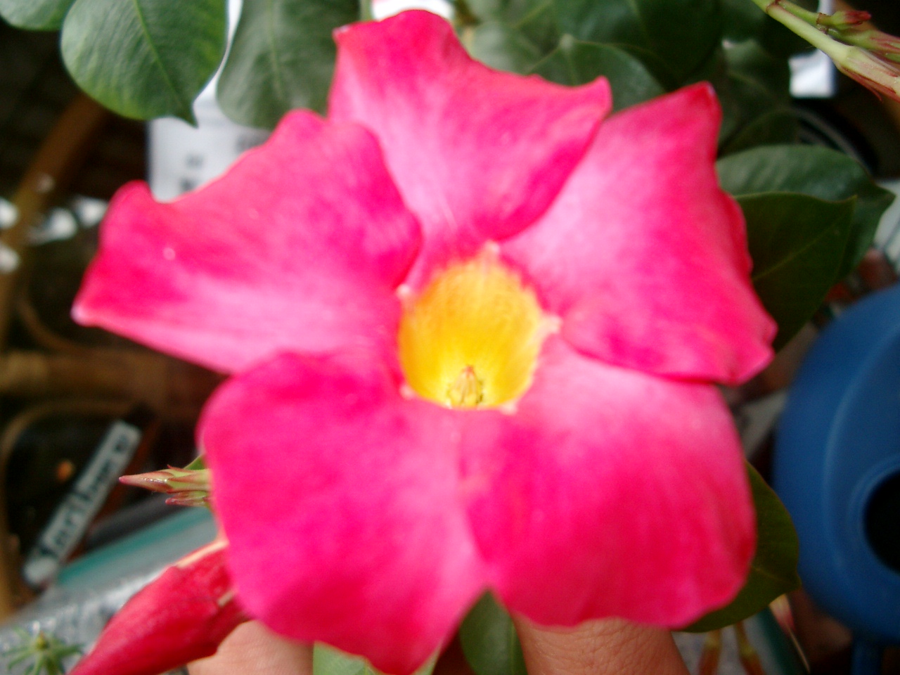 ach ja meine andere dipladenia hat ihre ersten blüten geöffnet und ich finde die trotzdem sie sich rollen di blüten einfach super schön vor allem wegen der schattierung der blüte.