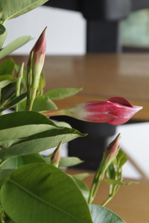 In mein schönes Holzfass wird nun eine rote Dipladenia ziehen. Es ist das erste Mal das ich mit dieser Pflanze in Berührung komme und möchte natürlich nichts falsch machen. Darum habe ich erstmal zwei Fragen:
