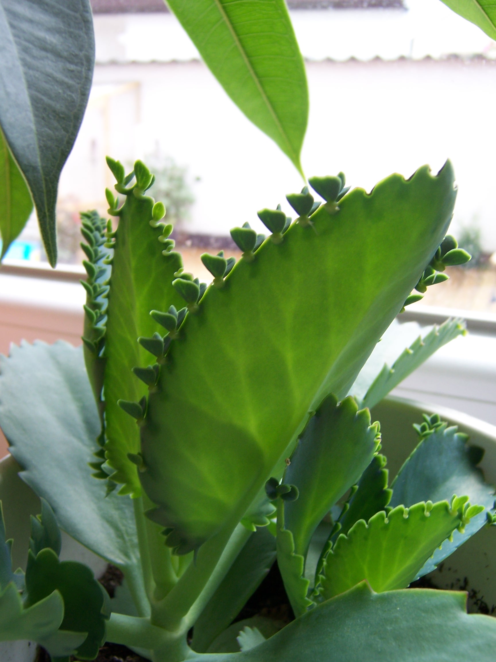 Wenn Dir Pflanze Nr. 2 (das Brutblatt) zu sehr wuchert, dann kannst Du ja mal versuchen, sie zu verjüngen.