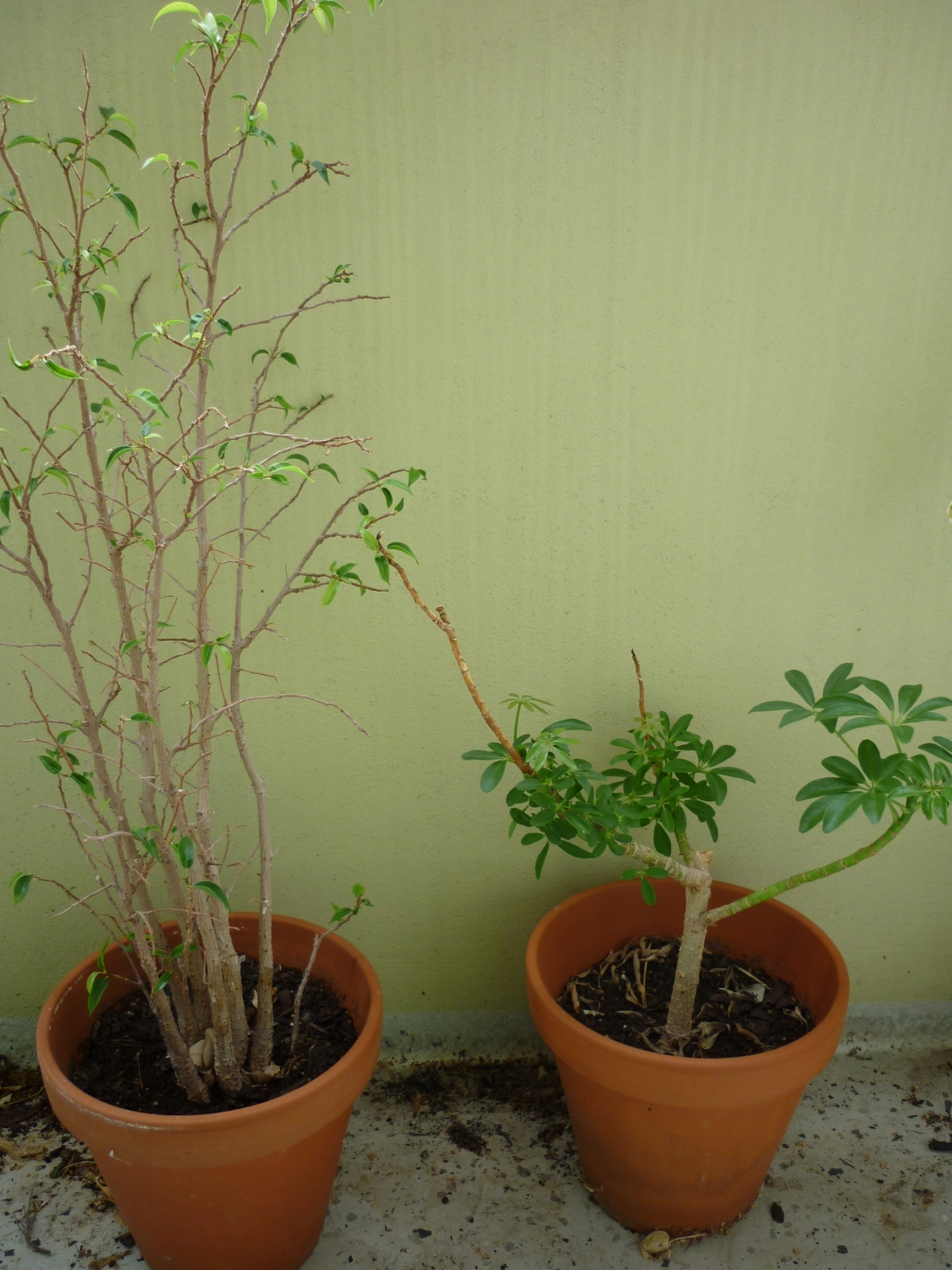 im April diesen Jahres habe ich aus der Arbeit ein paar vernachlässigte Pflanzen mitgenommen, und zwar eine Schefflera, einen Ficus benjamina und eine Dracaena fragrans. Die drei Pflanzen wurden Anfang des Jahres von den Kollegen in diese Tontöpfe umgetopft, aber dann haben sie vergessen, die Pflänzchen auch zu gießen...