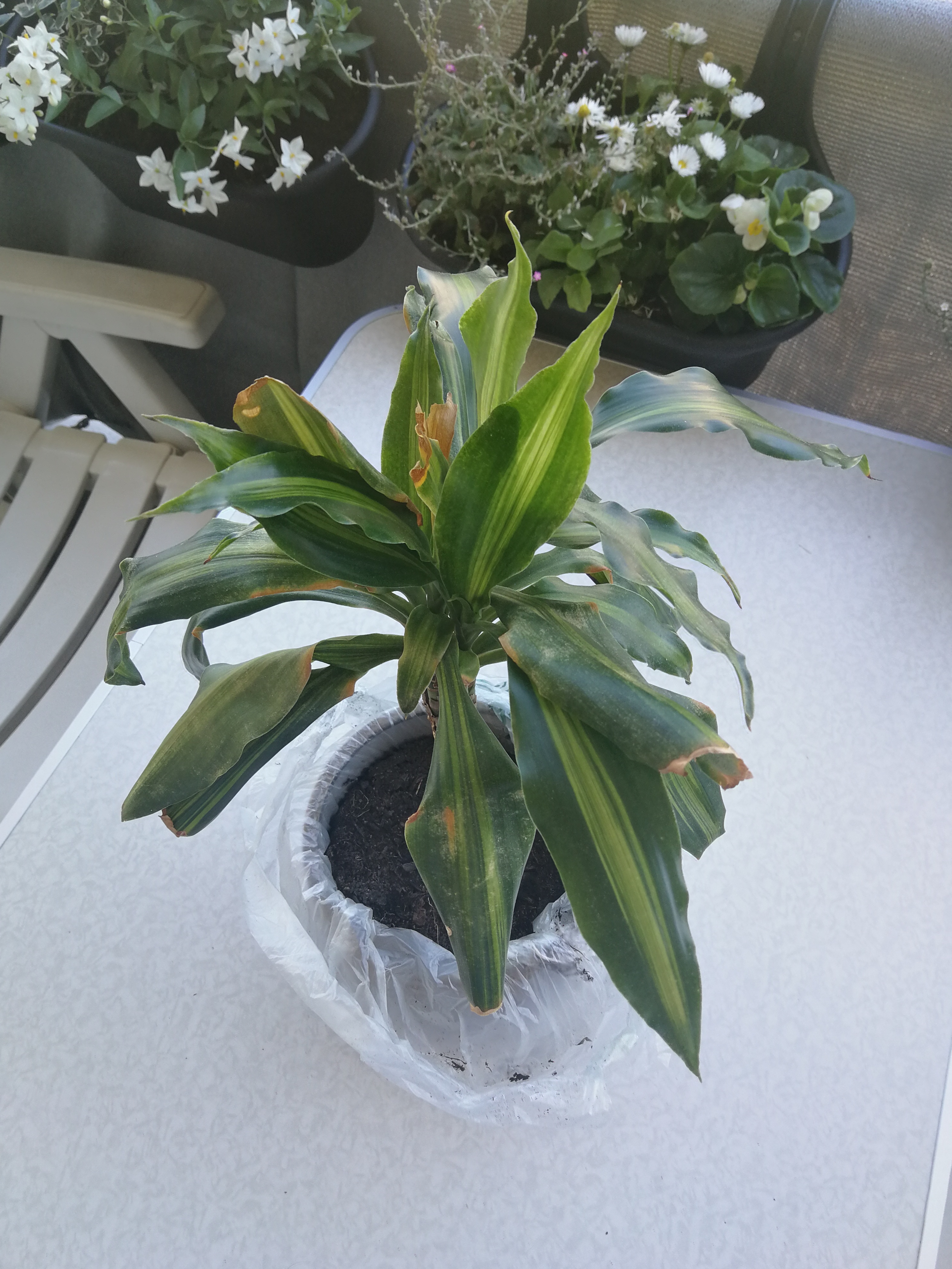 vielen Dank erstmal Ich habe einige Fotos angefügt. Bitte nicht steinigen und nicht wundern, weshalb die Erde in einer Tüte ist. Habe beim Umtopfen vor wenigen Tagen festgestellt, dass ich den geplanten größeren Plastiktopf schon anderweitig verwendet hab. Die Tüte ist nur provisorisch. Das beschriebene Problem herrschte schon vorher.