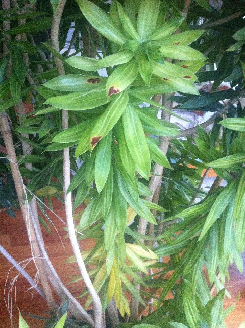 Seit ca 2 Wochen hat sie jedoch an ein paar, im unteren Bereich der Pflanze befindlichen, Seiten-Trieben geblich-braun verfärbte Blätter bekommen, die dann recht schnell abfallen, sowie an denselben Trieben im oberen Bereich rostfarbene, eng abgegrenzte Flecken (siehe Bild)