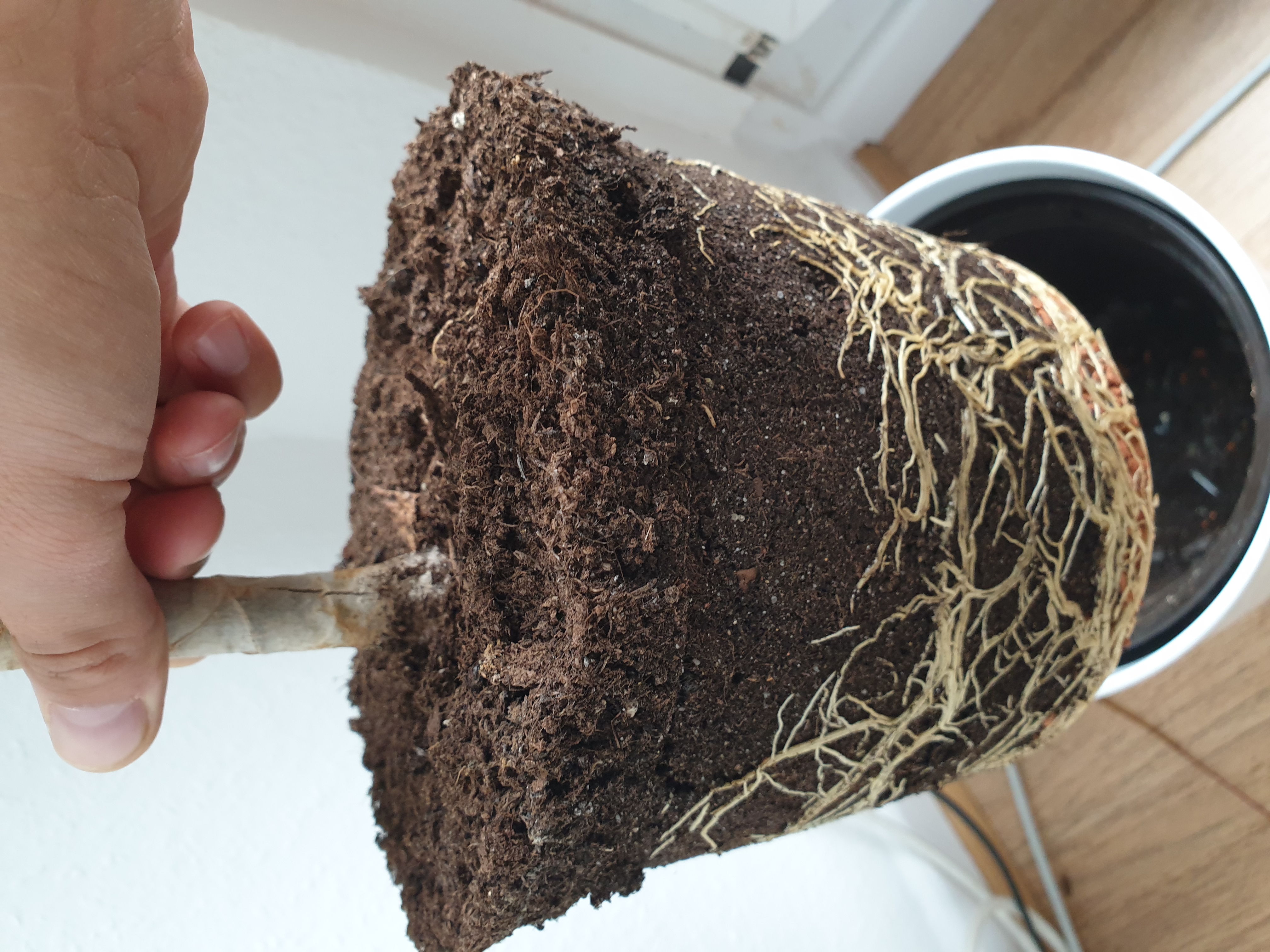 Jetzt habe ich gestern circa 5 - 6 gelbe Blätter entdeckt, die auch abgefallen sind als ich den Baum bewegt habe. Andere Blätter haben auch ein paar gelbe Punkte. Die meisten Blätter sehen aber gut aus und der Baum macht einen kräftigen Eindruck. Hat er vielleicht zu viel Sonne abbekommen? Er steht an der Balkontür zum Südwestbalkon. Dort steht er aber schon seit März. Umgetopft habe ich ihn das letzte mal 2018. Ansonsten gieße ich ihn normal, würde ich sagen. Die Wurzeln sehen meiner Meinung nach auch in Ordnung aus. Vielleicht gieße ich sugar zu wenig?? Ich habe den Baum nur 2 mal gedüngt dieses Jahr (1x Anfang April, 1x Mitte Mai).