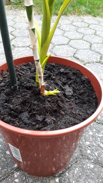 vor etwa 2 Jahren hatte ich einen kleinen Unfall mit meinem Drachenbaum. Wegen dem falschen Standort und falscher Pflege, sind die Blätter im unteren Bereich vertrocknet und der Stamm hat sich ziemlich dünn entwickelt. Nachdem ich die entsprechenden Bedingungen verbessert habe, ist der Baum sehr schön weier gewachsen, aber der untere Teil ist natürlich weiterhin unansehnlich. Ich habe irgendwann die Spitze gekappt und der Baum ist unten neu ausgetrieben.