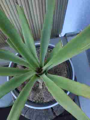 Ich habe diesen Drachenbaum vor mehreren Jahren aus Samen gezogen. Er wuchs zunächst prächtig, so dass er seinen Topf fast schon sprengte. Deshalb wollte ich ihm was Gutes tun und habe ihn umgetopft. Doch das ist ihm gar nicht bekommen. Mittlerweile sind etwa zwei Jahre vergangen und seitdem ist der Drachenbaum keinen Millimeter mehr gewachsen. Innen sieht es irgendwie verfault aus und nicht so, als könnten noch neue Blätter nachwachsen, oder? Zumal das nun schon zwei Jahre lang so ist. Andererseits, wenn der Baum tot wäre, müssten die Blätter doch ganz braun sein und herunterhängen. Tun sie aber nicht. Sie sind nur vereinzelt etwas braun am Rand geworden. An den Stellen habe ich sie abgeschnitten. Aber sie stehen noch nach oben ab, wie man auf dem Foto sehen kann. Ist da noch was zu retten?