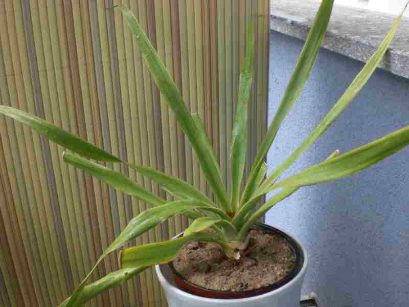 Ich habe diesen Drachenbaum vor mehreren Jahren aus Samen gezogen. Er wuchs zunächst prächtig, so dass er seinen Topf fast schon sprengte. Deshalb wollte ich ihm was Gutes tun und habe ihn umgetopft. Doch das ist ihm gar nicht bekommen. Mittlerweile sind etwa zwei Jahre vergangen und seitdem ist der Drachenbaum keinen Millimeter mehr gewachsen. Innen sieht es irgendwie verfault aus und nicht so, als könnten noch neue Blätter nachwachsen, oder? Zumal das nun schon zwei Jahre lang so ist. Andererseits, wenn der Baum tot wäre, müssten die Blätter doch ganz braun sein und herunterhängen. Tun sie aber nicht. Sie sind nur vereinzelt etwas braun am Rand geworden. An den Stellen habe ich sie abgeschnitten. Aber sie stehen noch nach oben ab, wie man auf dem Foto sehen kann. Ist da noch was zu retten?