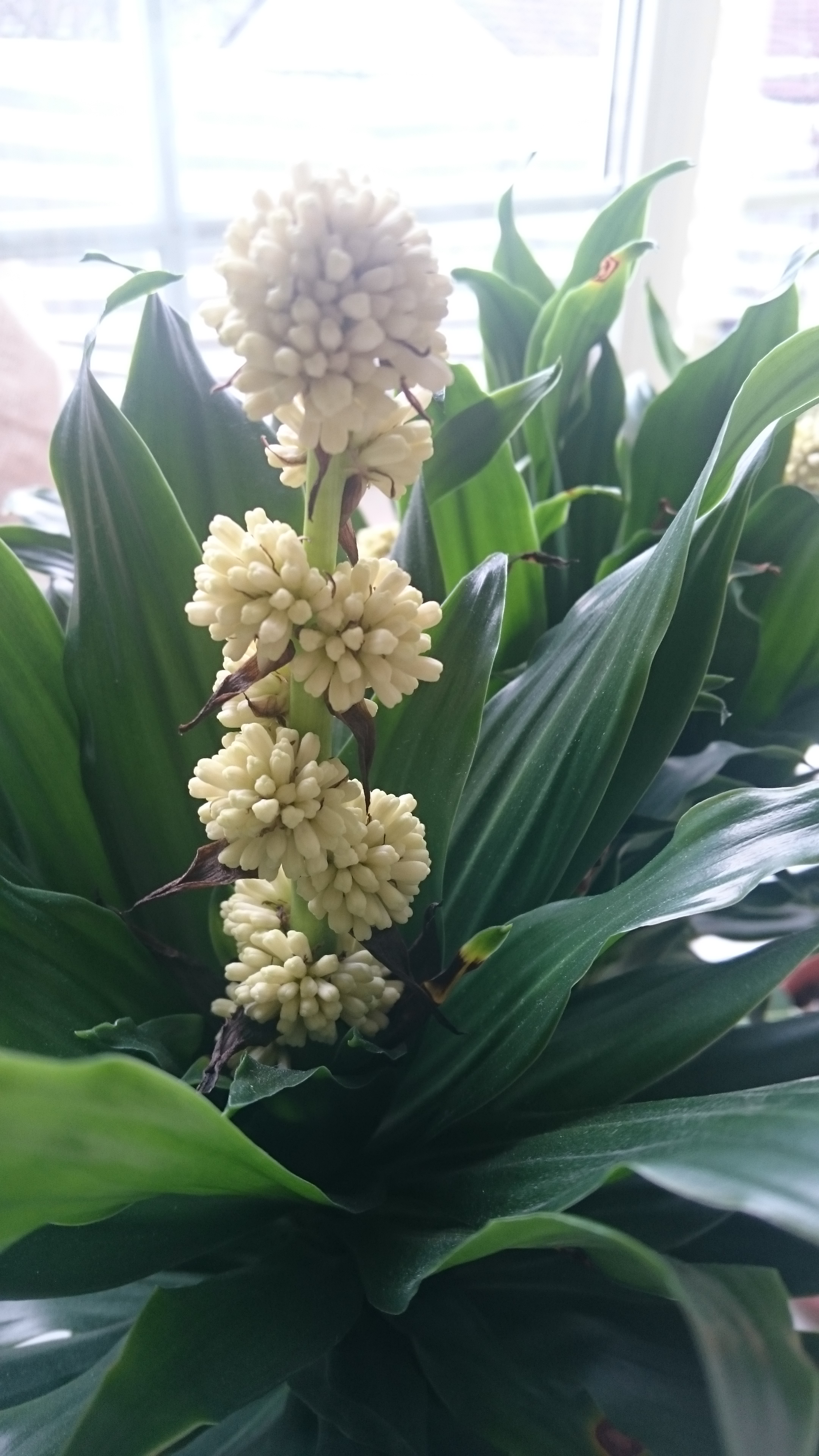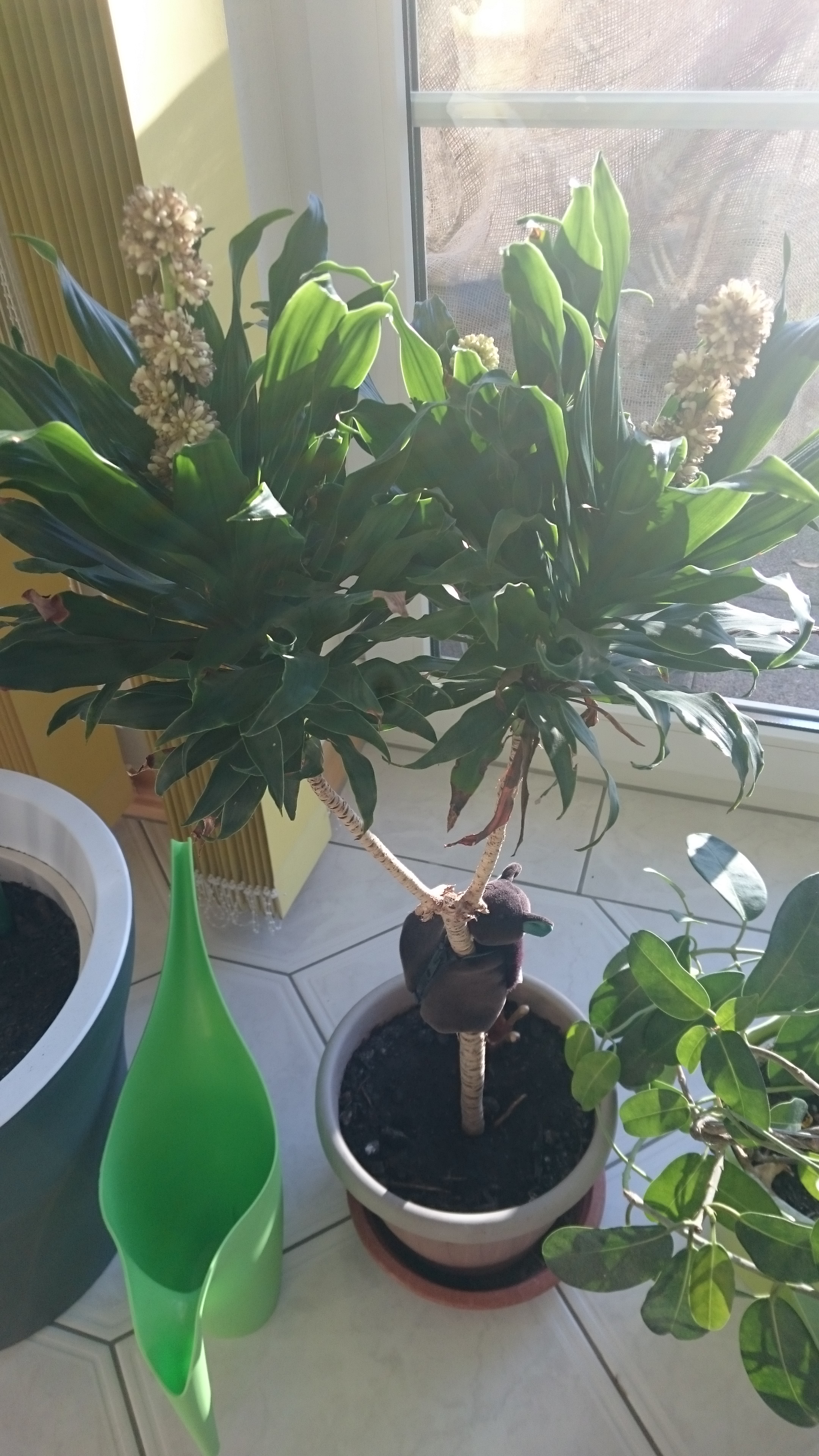 Ja, ich kann mich erinnern, daß meine Dracaena fragrans (als es sie noch gab) auch einmal geblüht hat! Das ganze Zimmer hatte einen honigsüßen Blütenduft. Daher auch der Name: fragrans = duftend.