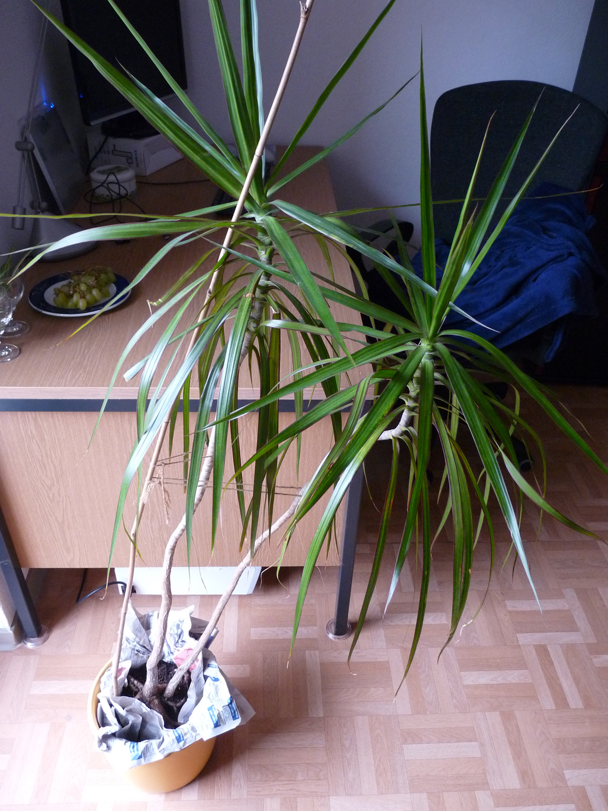 Mein momentanes Sorgenkind ist eine geschenkt bekommene Dracaena, bei der ich mir Gedanken mache, ob sie einen Schnitt verkraftet.