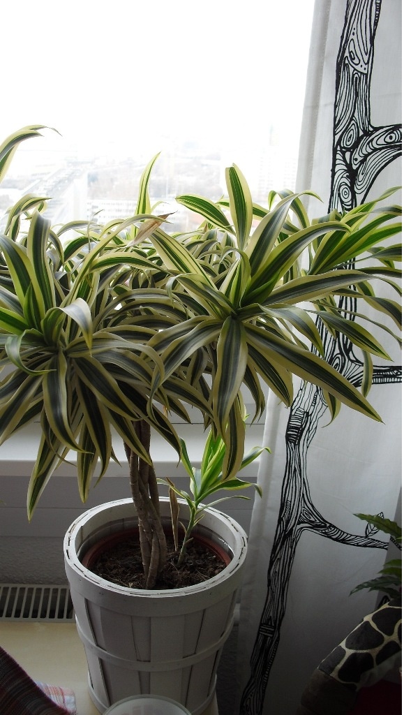 ich topfe gerade meinen drachenbaum um, weil der zur zeit uuuuunheimlich viele blätter verliert und ich mir dachte: "vielleicht frisst sein baby ihm die ganzen nährstoffe weg"