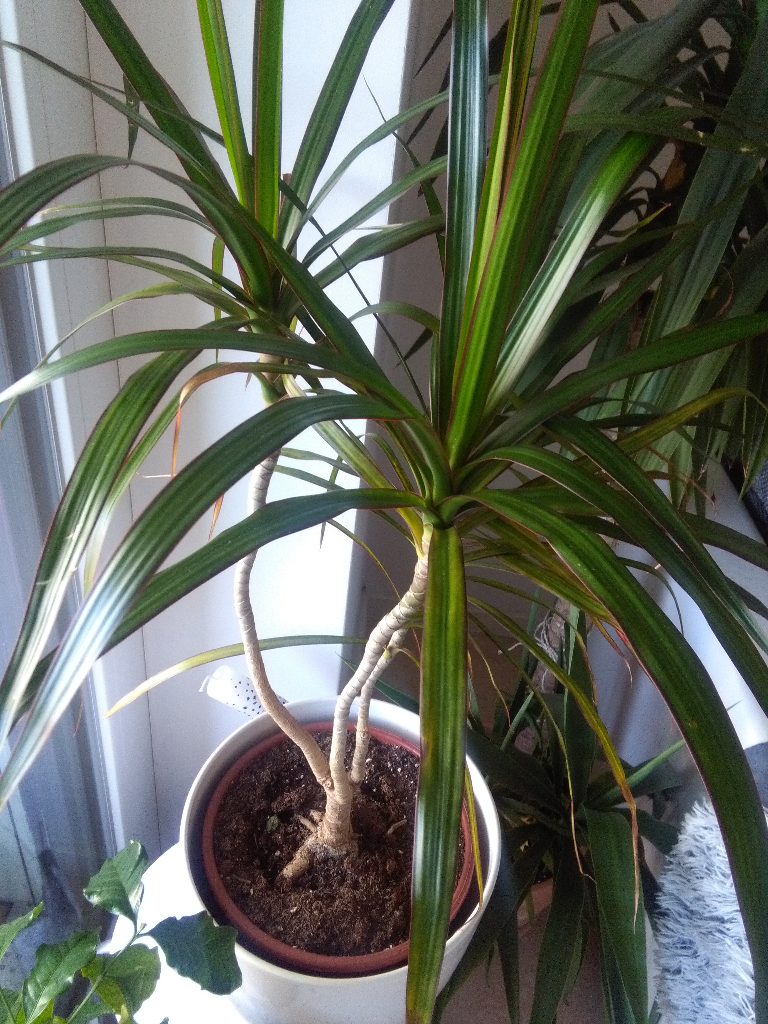 Hallo zusammen! Vor ein paar Monaten habe ich meinen Drachenbaum in einen größeren Topf umgetopft und auf den Balkon gestellt.Seit dem verliert er massenhaft Blätter. Der einst so schöne Baum sieht mittlerweile ziemlich kläglich aus. Woran kann das liegen? Die Wurzeln sehen gut aus, da sie mittlerweile unten aus den Abzugslöchern rausschauen. Schön weiß. Kann das an dem größeren Topf liegen, dass die Pflanze ihre Kraft in das Wurzelwachstum steckt und im Gegenzug “Haare“lässt? Der Topf ist nämlich deutlich größer als der vorherige. Die Pflanze bekommt auch neue Blätter, aber täglich sind die unteren erst gelb und fallen dann braun ab. Wenn das so weiter geht ist sie bald kahl. Was kann ich tun?